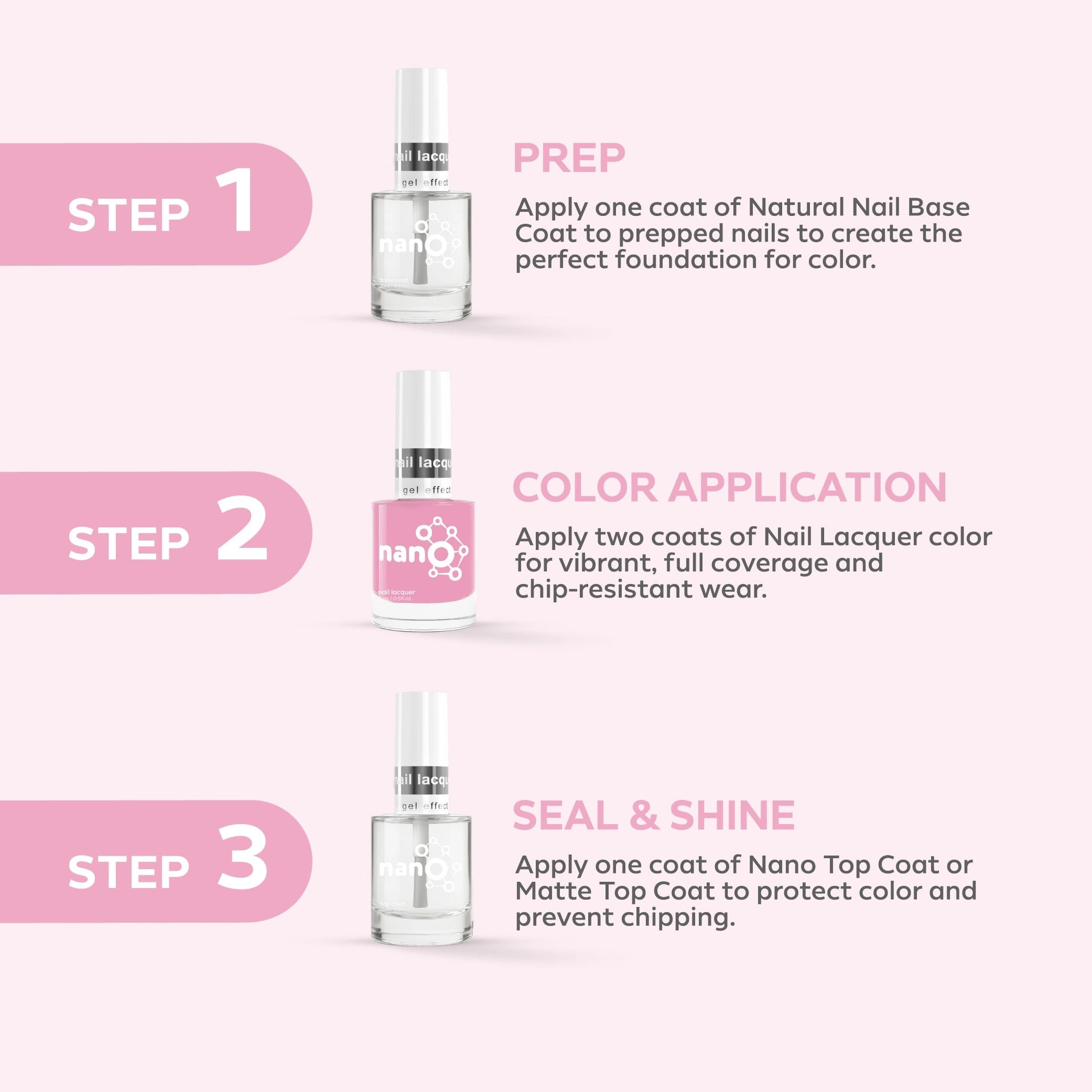 2. ضعي طبقة من Nano® Normal Base Coat لحماية أظافرك الطبيعية وضمان التصاق أفضل.