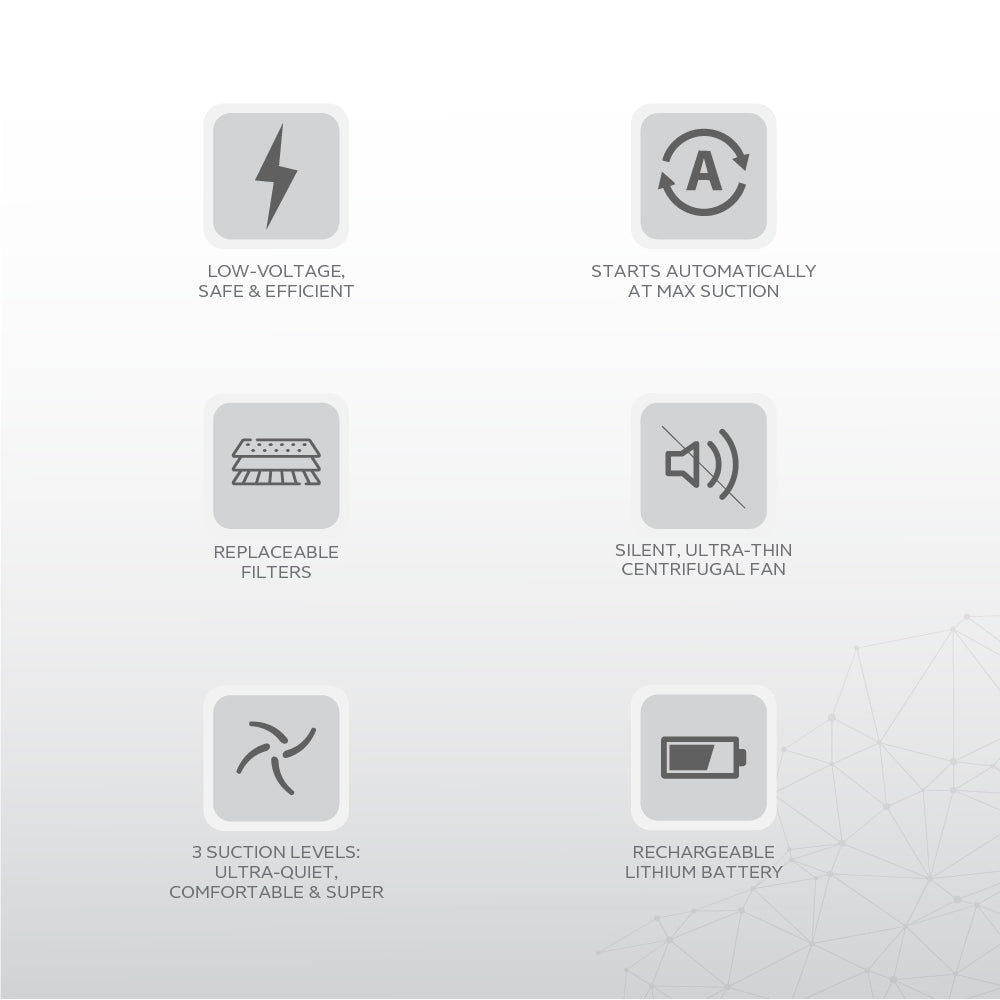 - Silent Ultra-Thin Fan – Advanced centrifugal fan delivers strong suction while maintaining a quiet, comfortable environment.