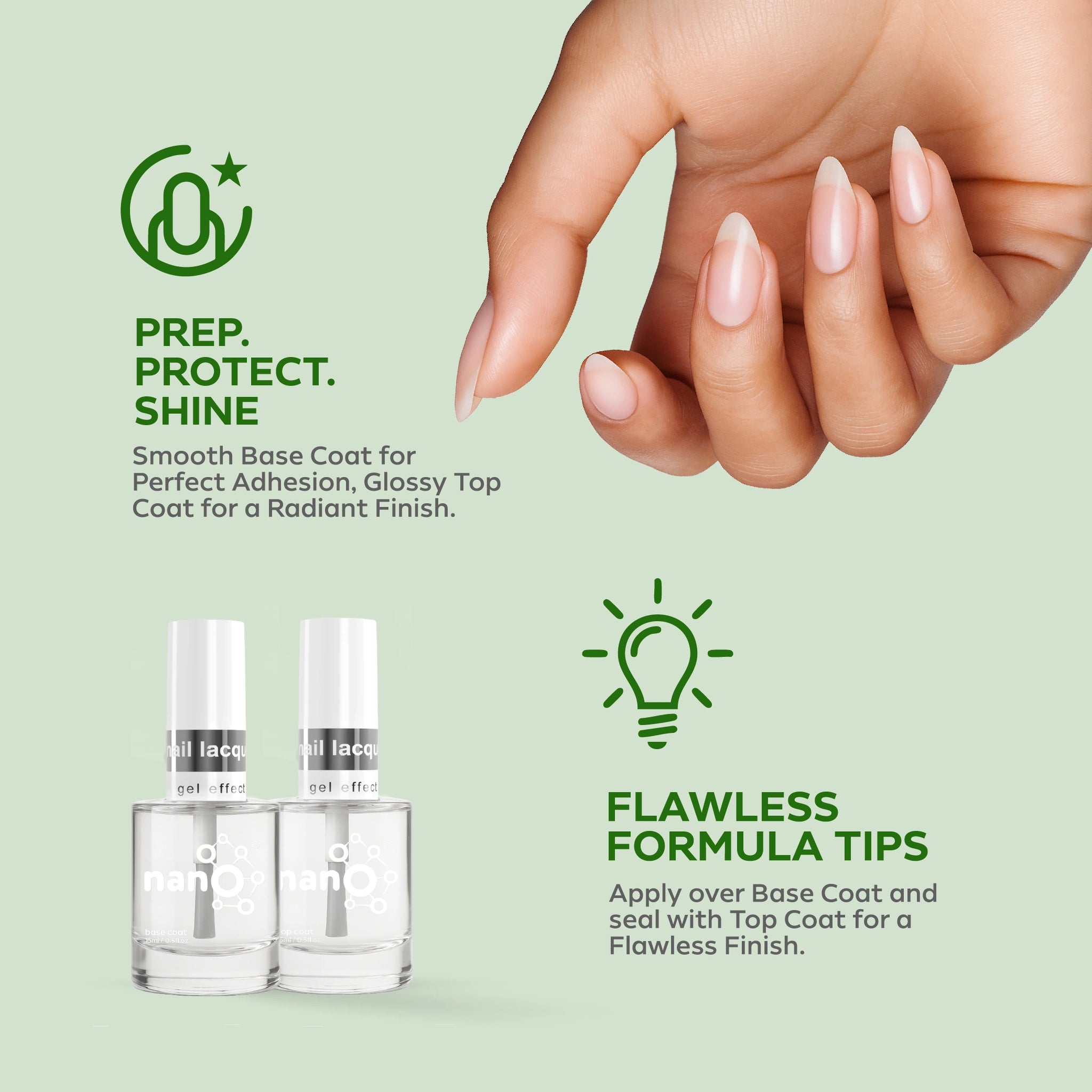 - ضعي طبقة من Nano® Normal Base Coat لحماية أظافرك الطبيعية وضمان التصاق أفضل.