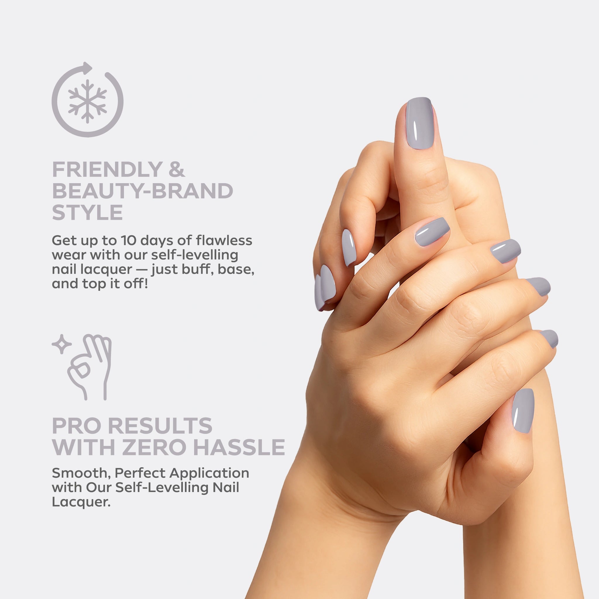 - ذاتي التسوية، سهل التطبيق لتغطية الأظافر بالكامل.