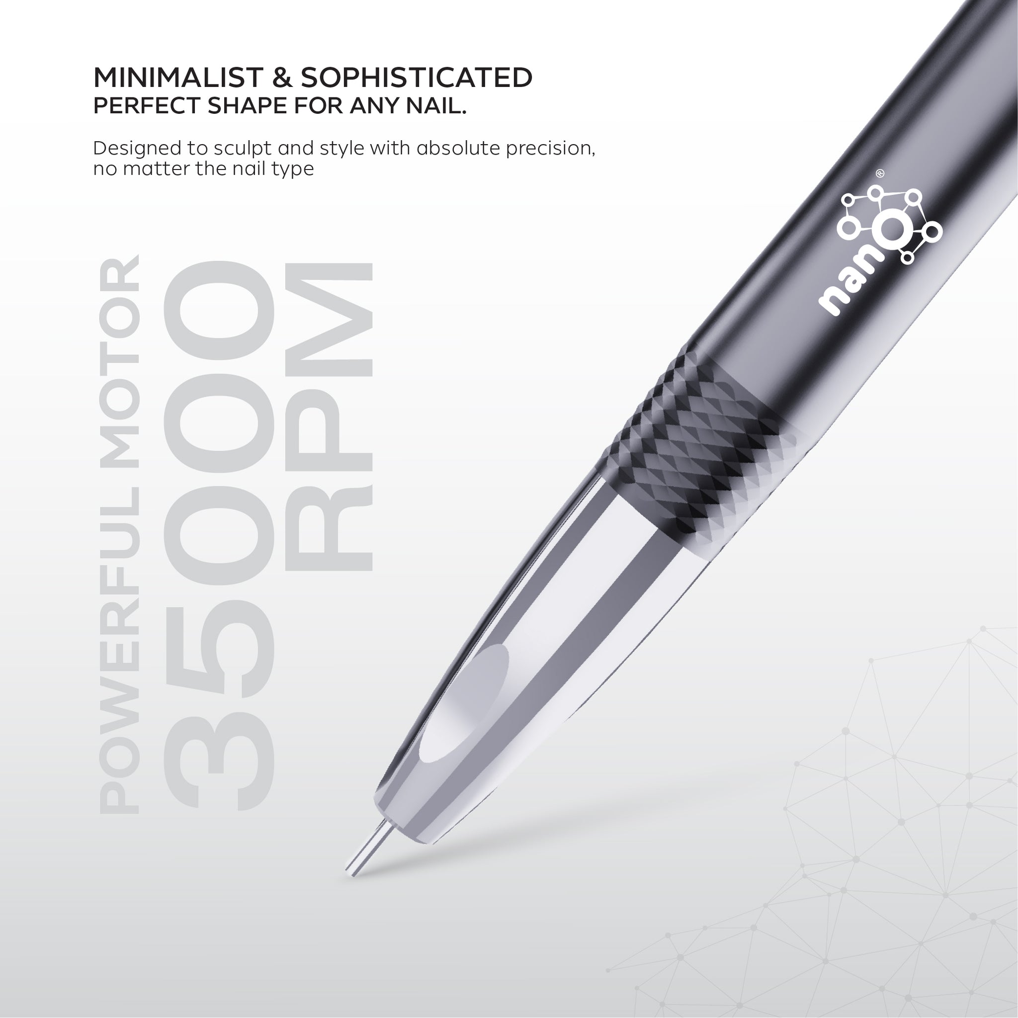 PROFESSIONAL ELECTRIC NAIL DRILL DESIGNED FOR PRECISE SHAPING, EFFICIENT PRODUCT REMOVAL, AND SMOOTH, CONTROLLED OPERATION.