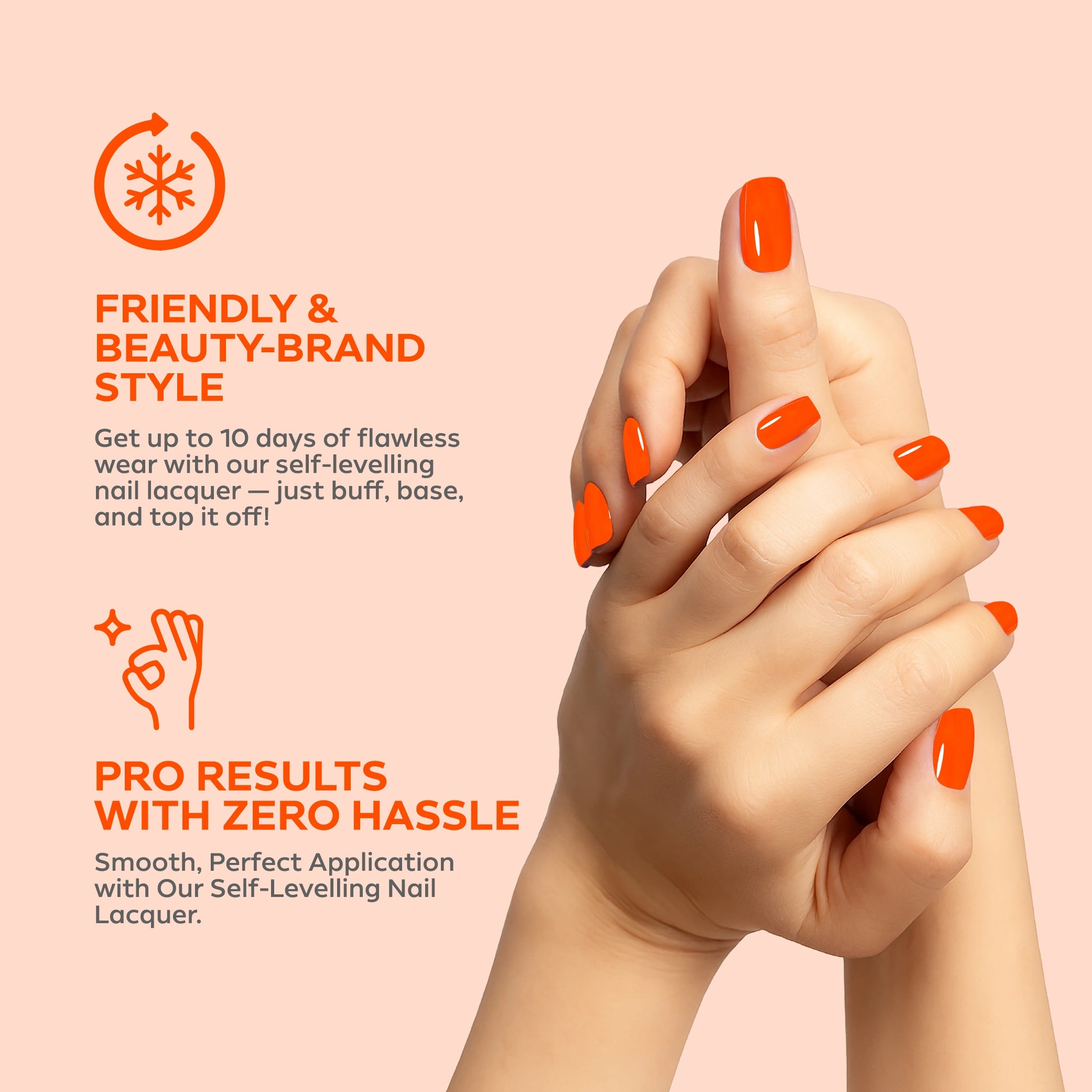 جريء وناري، Orange Flame هو ظل مشرق وعاطفي يشعل الطاقة والإثارة، مثالي لأي شخص يحب الإدلاء ببيان جريء بأظافره.