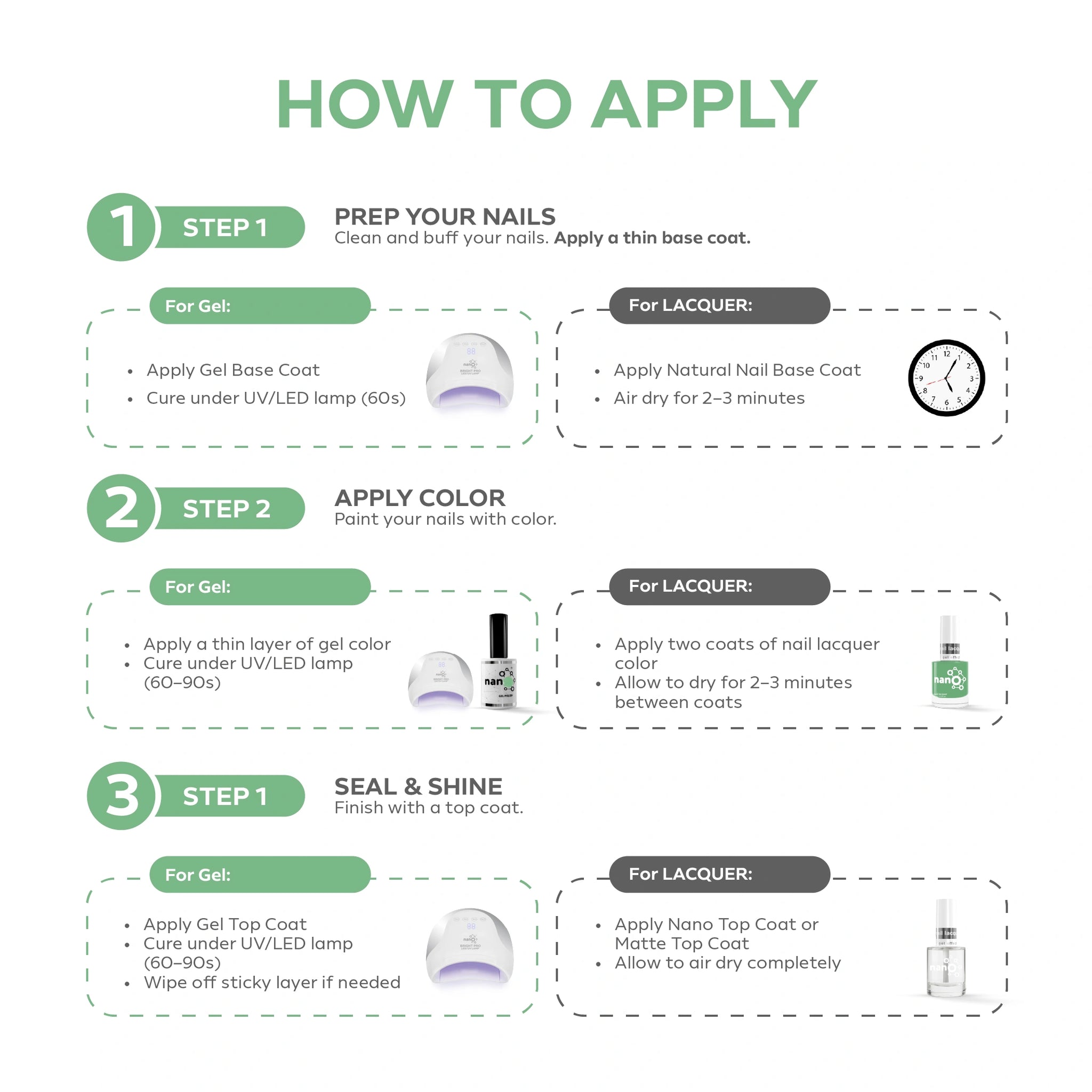 ✔ TPO-FREE (GEL) | ✔ HEMA-FREE (GEL) | ✔ VEGAN (NAIL POLISH) | ✔ CRUELTY-FREE