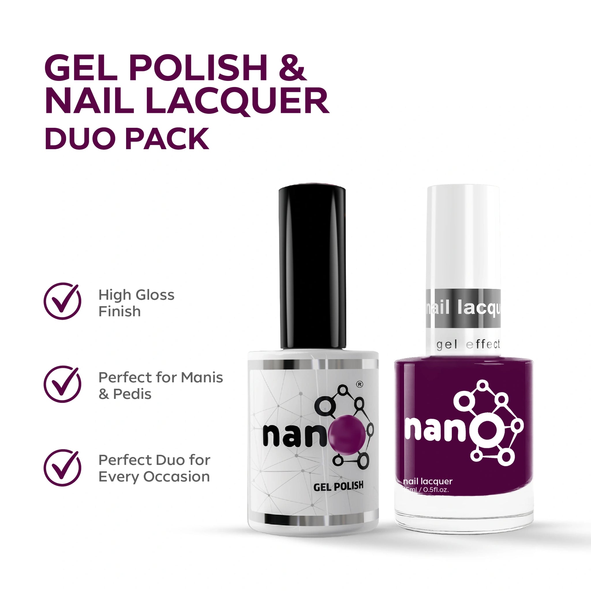 P2621 – Amethyst Twilight Duo Pack – TPO & HEMA Free Gel Polish & Nail Lacquer (15ml each) | Long-Lasting, High-Gloss Nail Polish Set