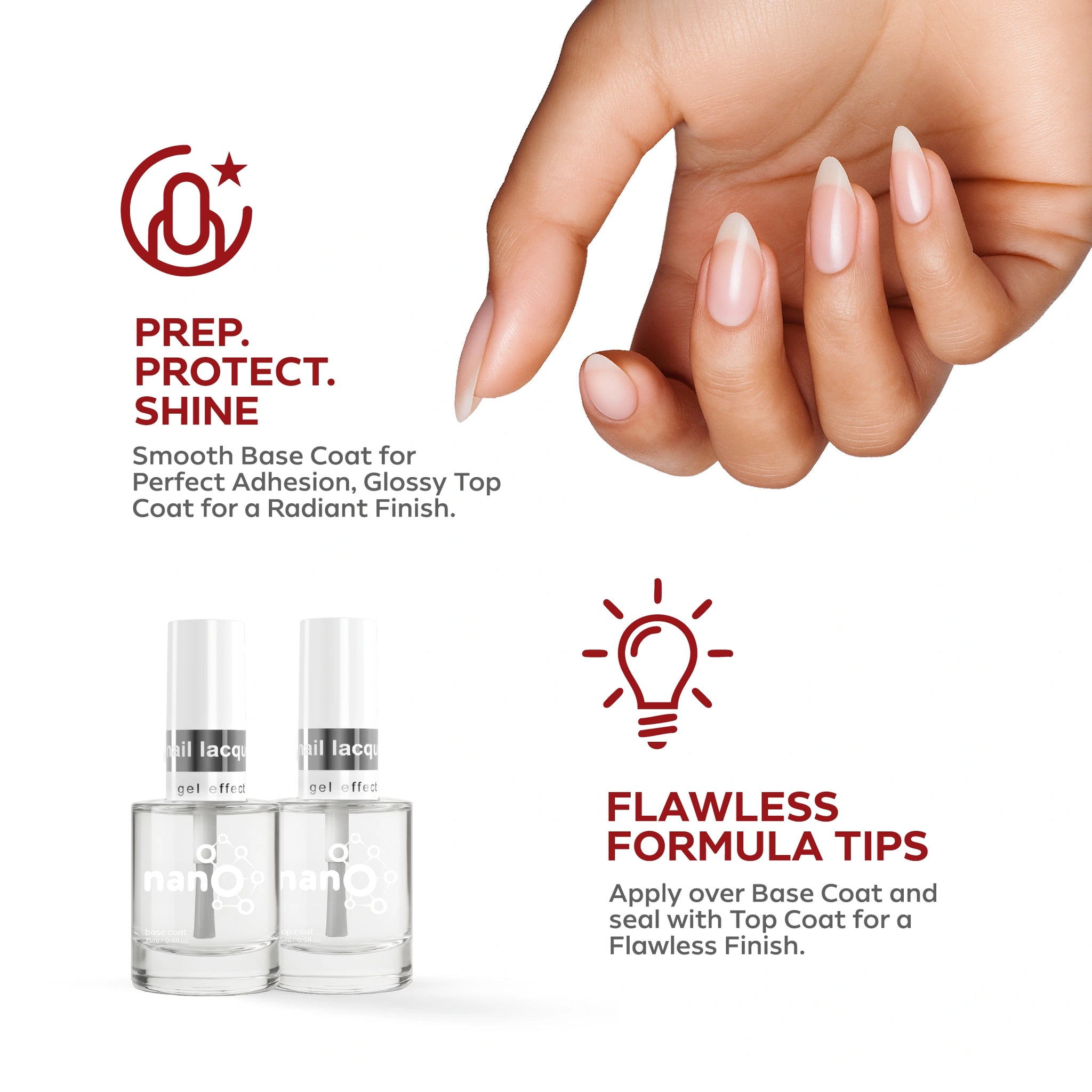 - ضعي طبقة من Nano® Normal Base Coat لحماية أظافرك الطبيعية وضمان التصاق أفضل.