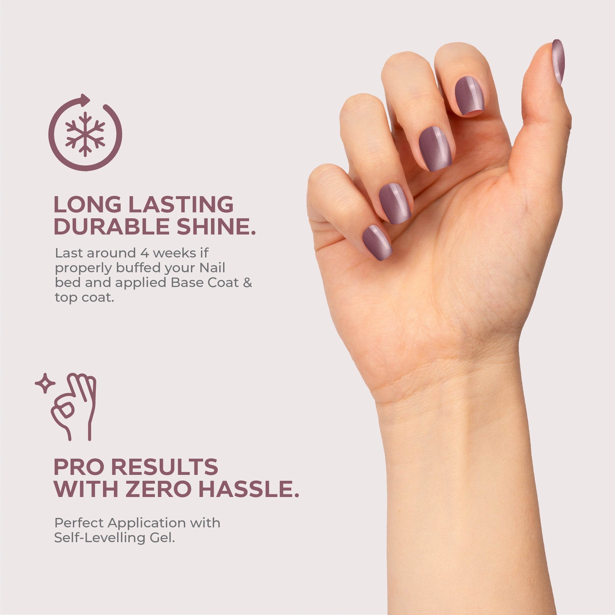 - ذاتي التسوية، سهل التطبيق لتغطية الأظافر بالكامل.