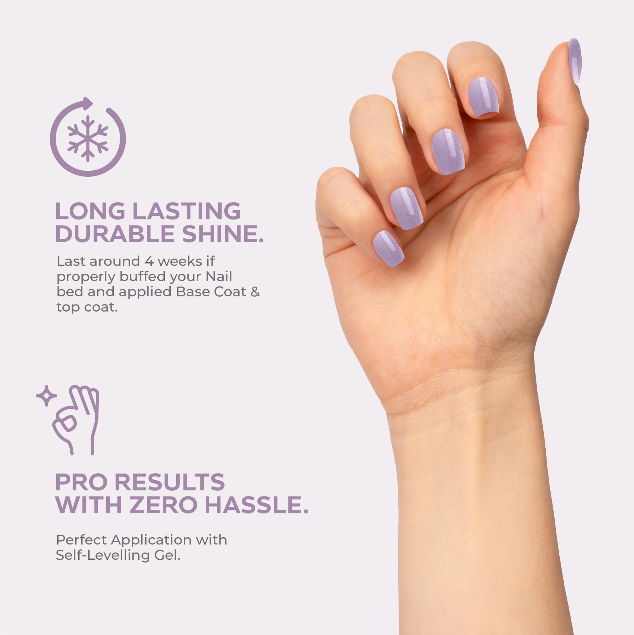 - ذاتي التسوية، سهل التطبيق لتغطية الأظافر بالكامل.