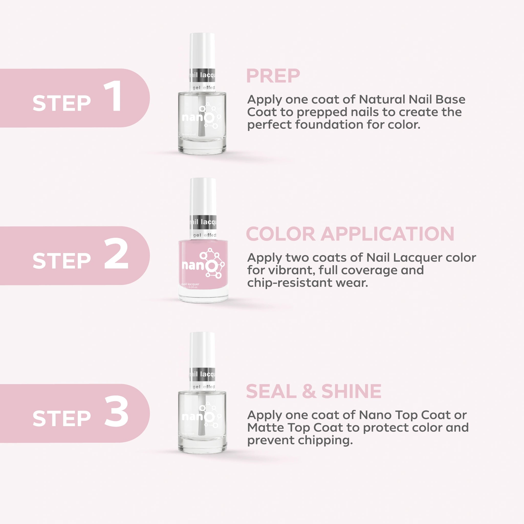 - Finish by applying Nano® Normal Top Coat for a long-lasting, high-gloss finish.