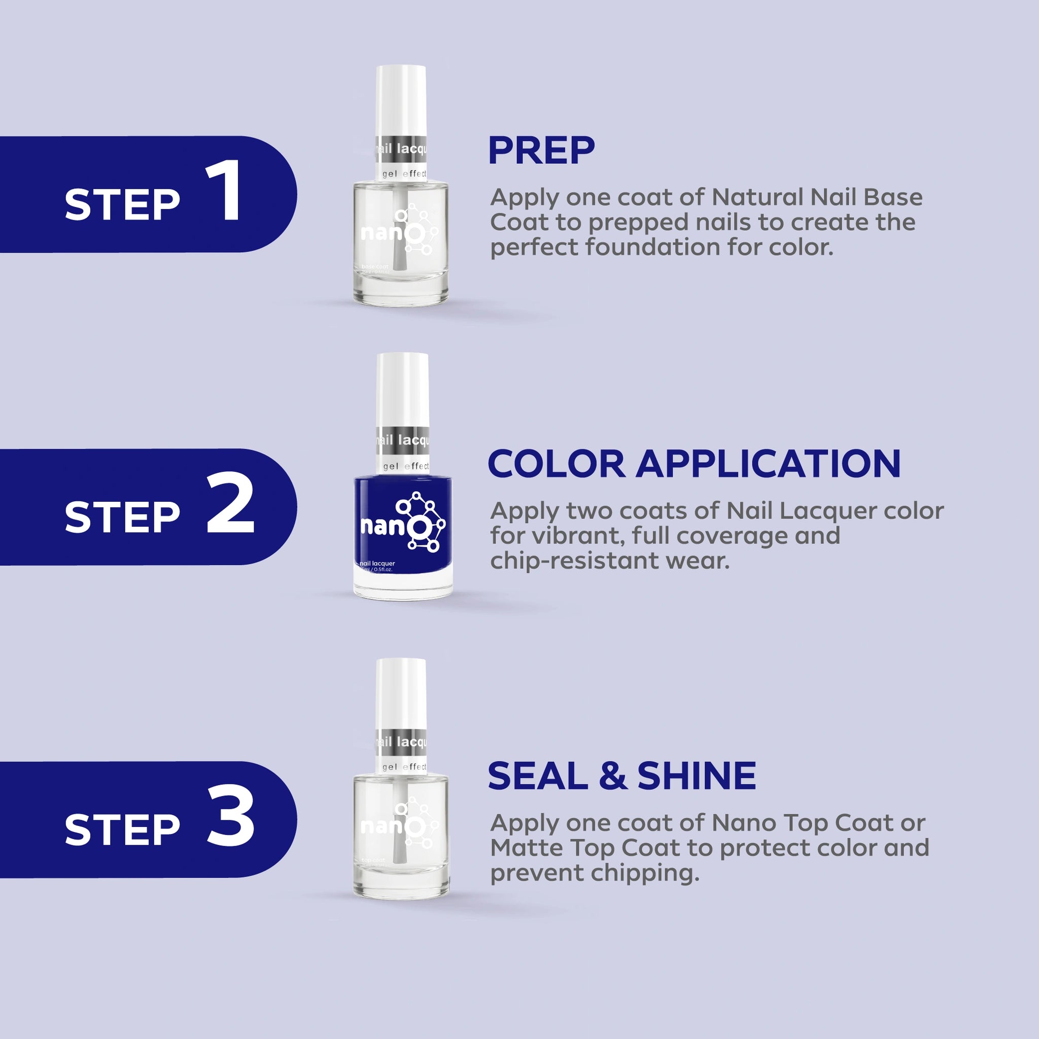 - Finish by applying Nano® Normal Top Coat for a long-lasting, high-gloss finish.