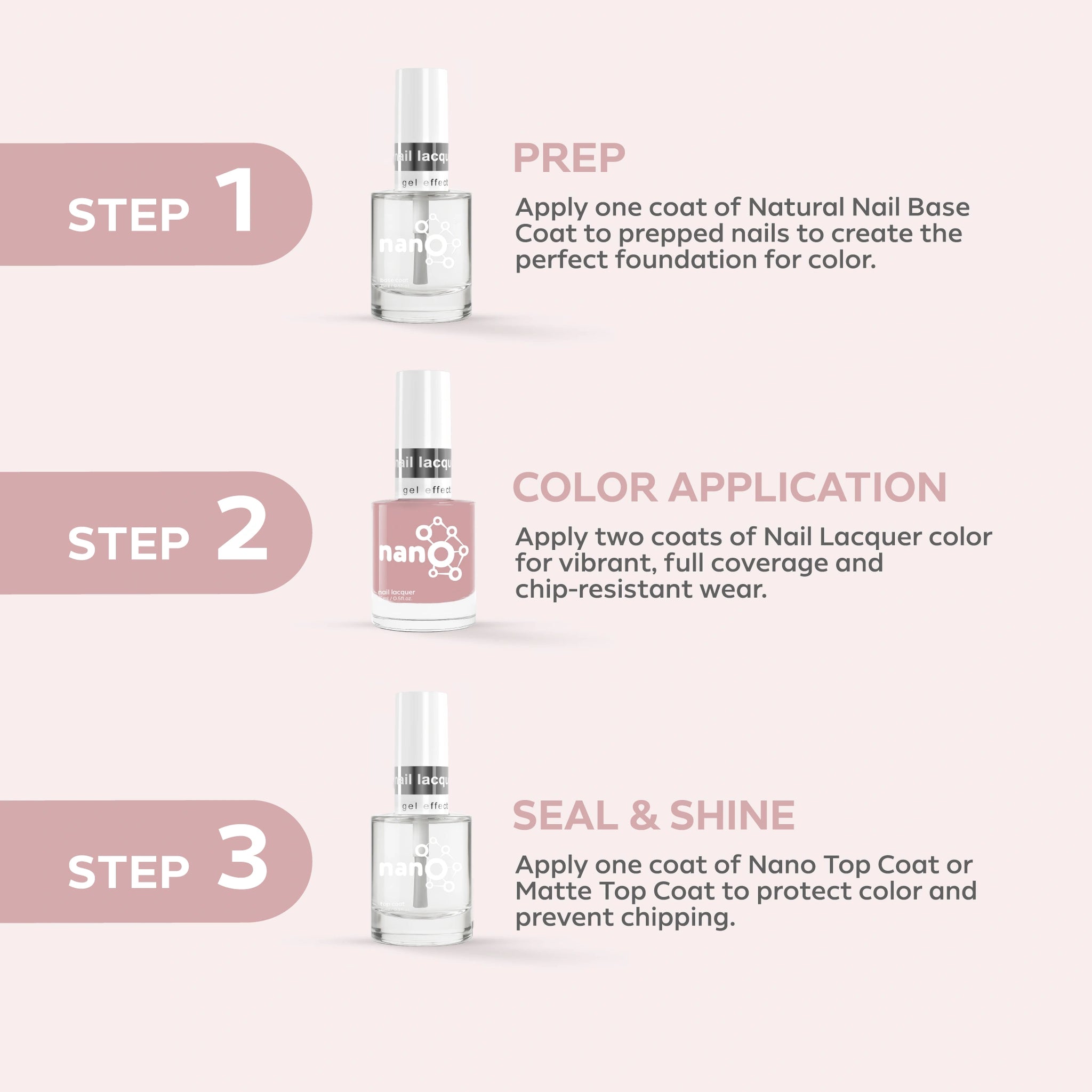 - Apply a layer of Nano® Normal Base Coat to protect your natural nails and ensure better adhesion.