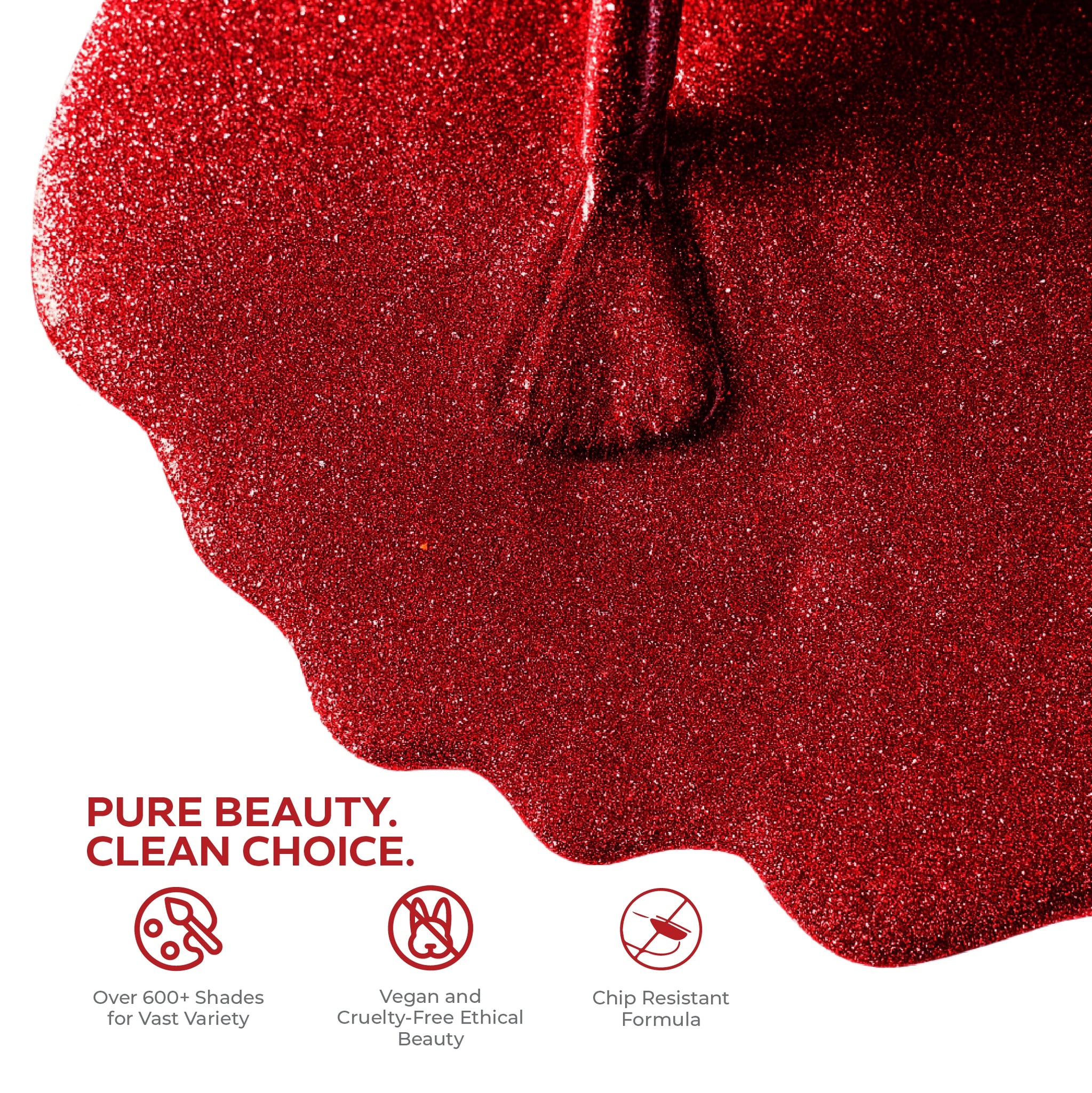 This Red Disco Glitter Gel Polish delivers rich, highly pigmented color with a smooth, self-leveling texture for consistent, streak-free coverage. Designed for professional use, the formula cures quickly under UV/LED lamps and maintains a high-gloss finish without shrinkage or yellowing. The TPO-free and HEMA-free formulation supports modern salon standards while providing reliable wear and easy soak-off removal.