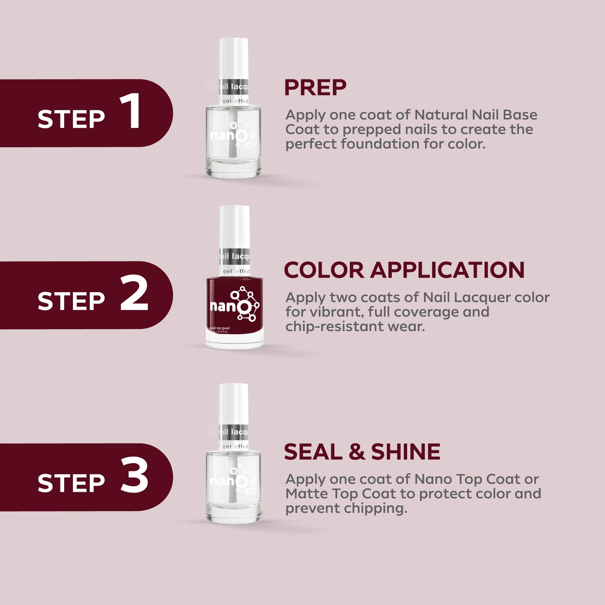 - Apply a layer of Nano® Normal Base Coat to protect your natural nails and ensure better adhesion.