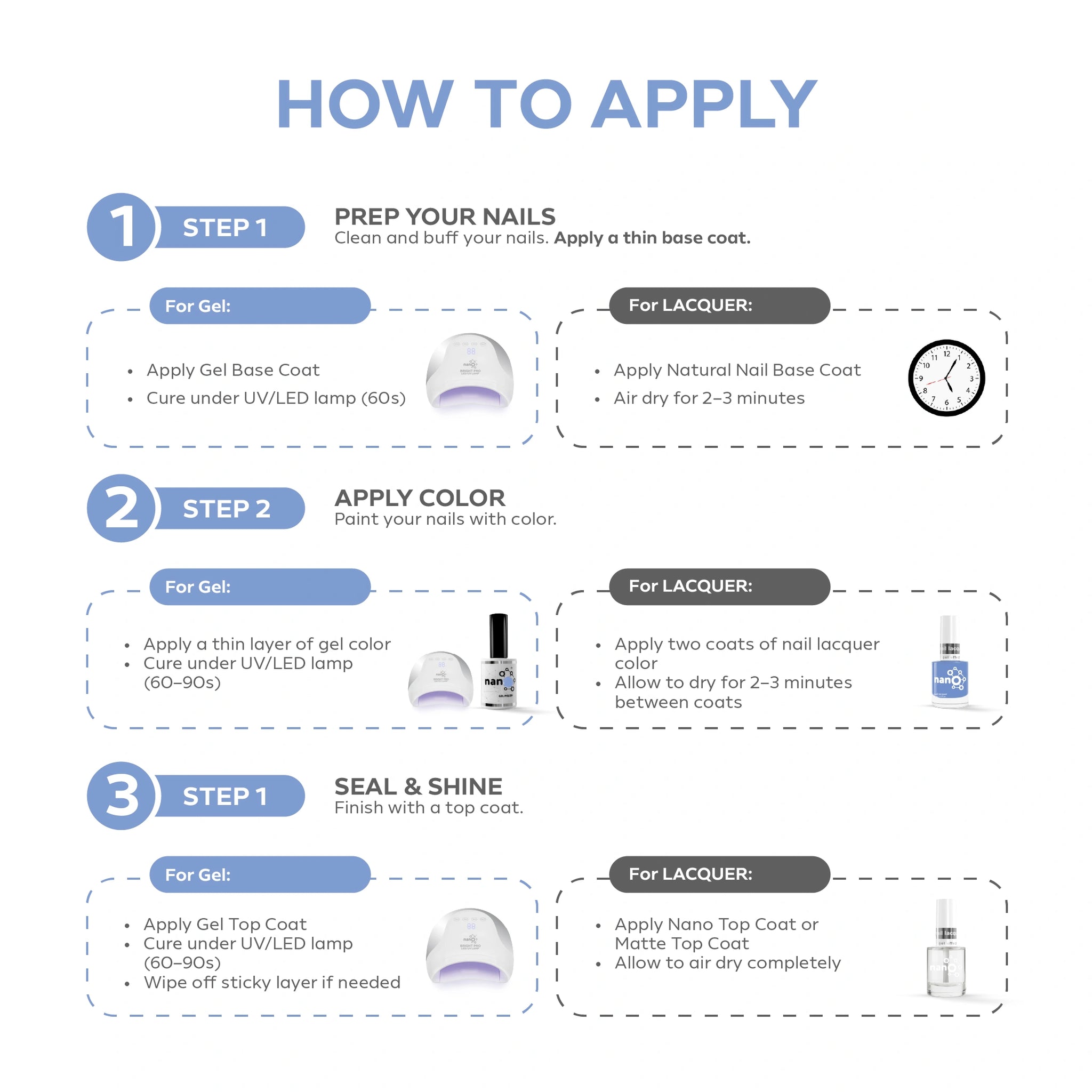 - Give nails a short break between applications to maintain natural nail strength.