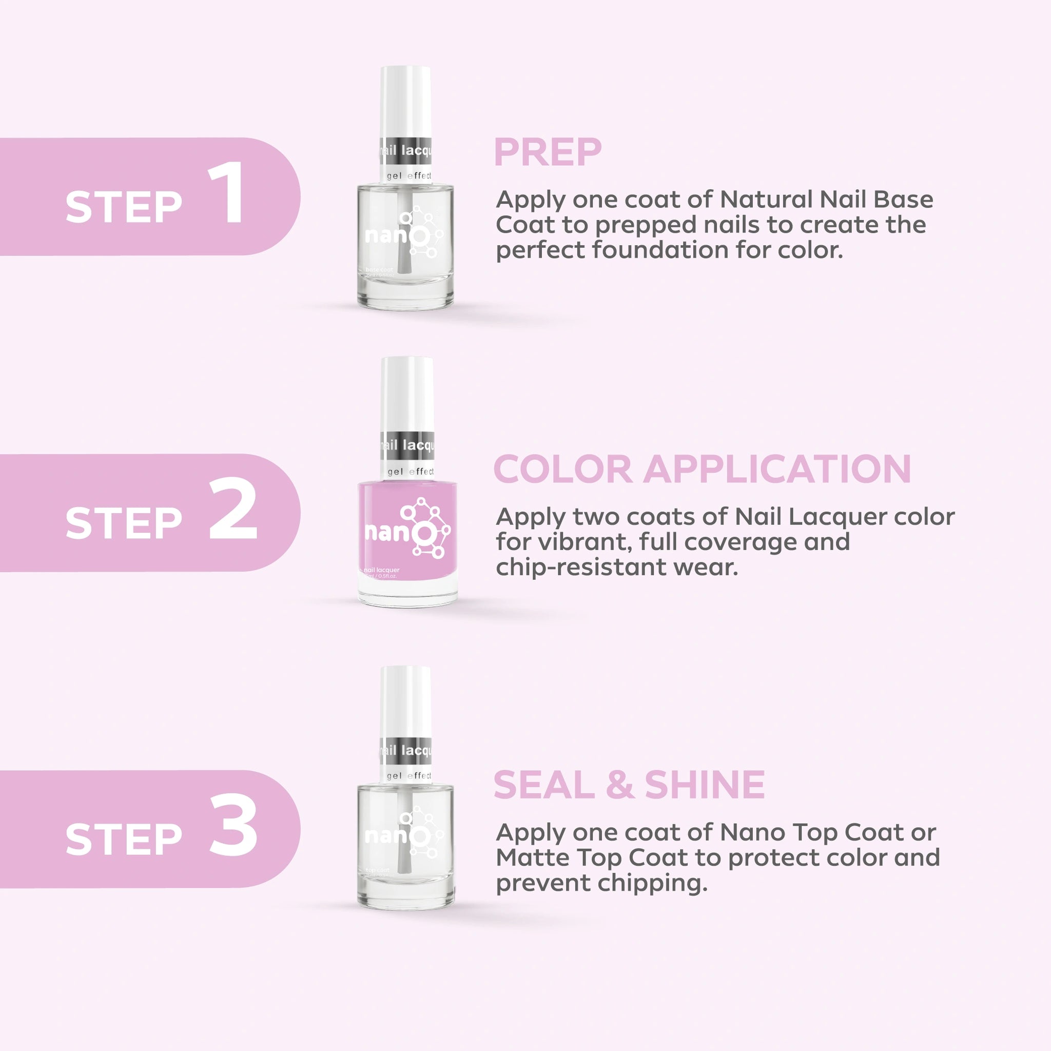 5. Finish by applying Nano® Normal Top Coat for a long-lasting, high-gloss finish.