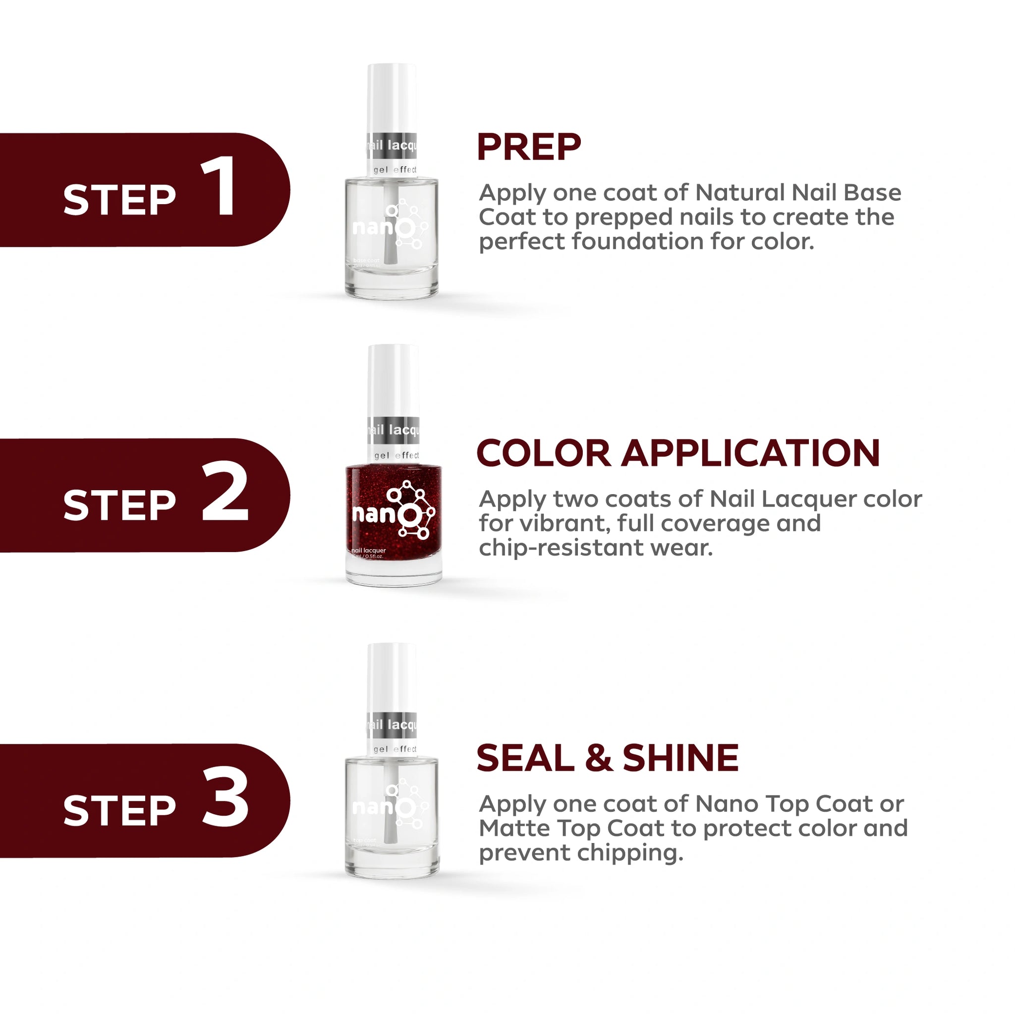 - Finish by applying Nano® Normal Top Coat for a long-lasting, high-gloss finish.