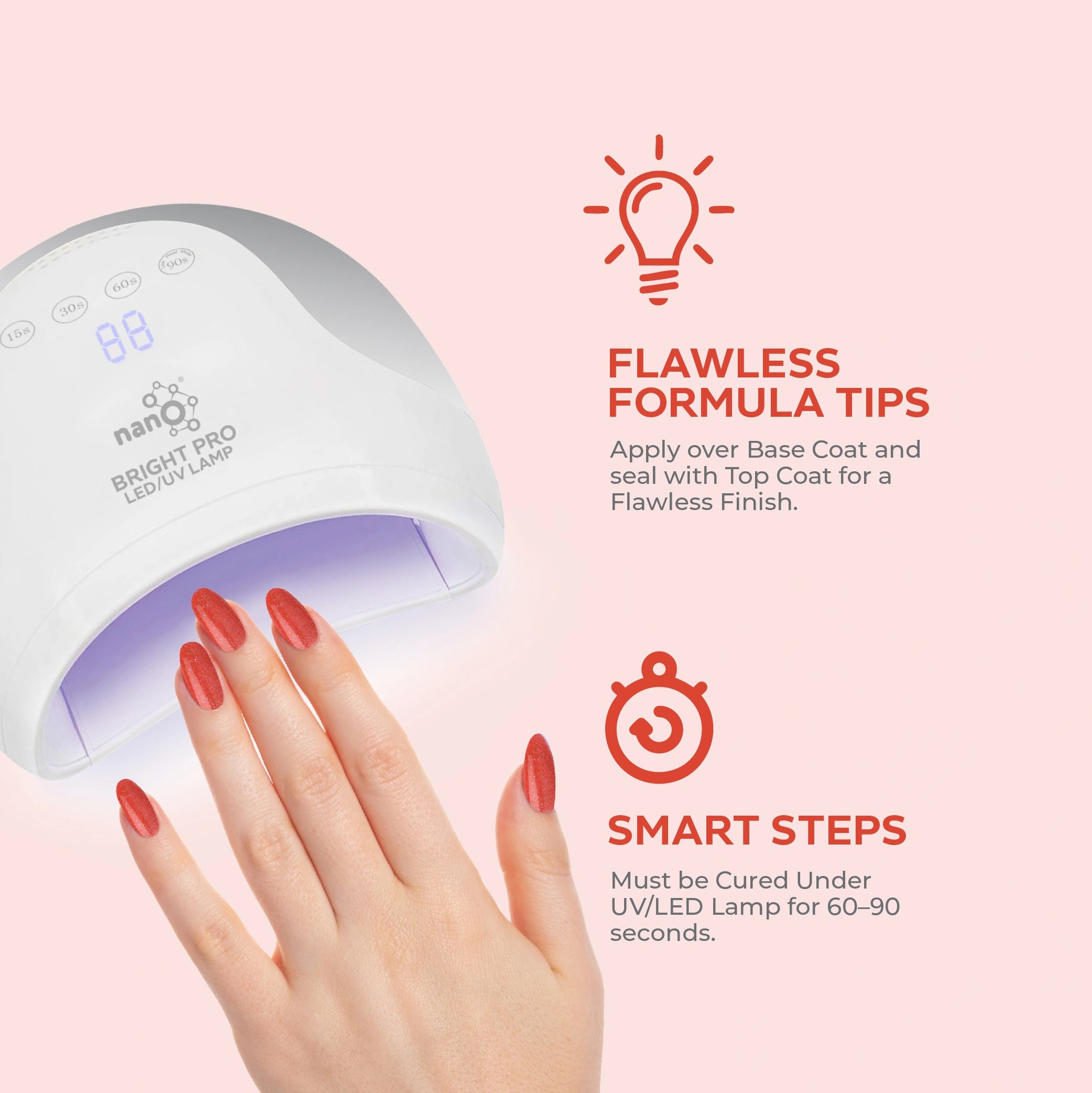 - Apply a second layer of Nano® gel nail polish and cure it under the Nano UV/LED lamp for an additional 60 seconds.