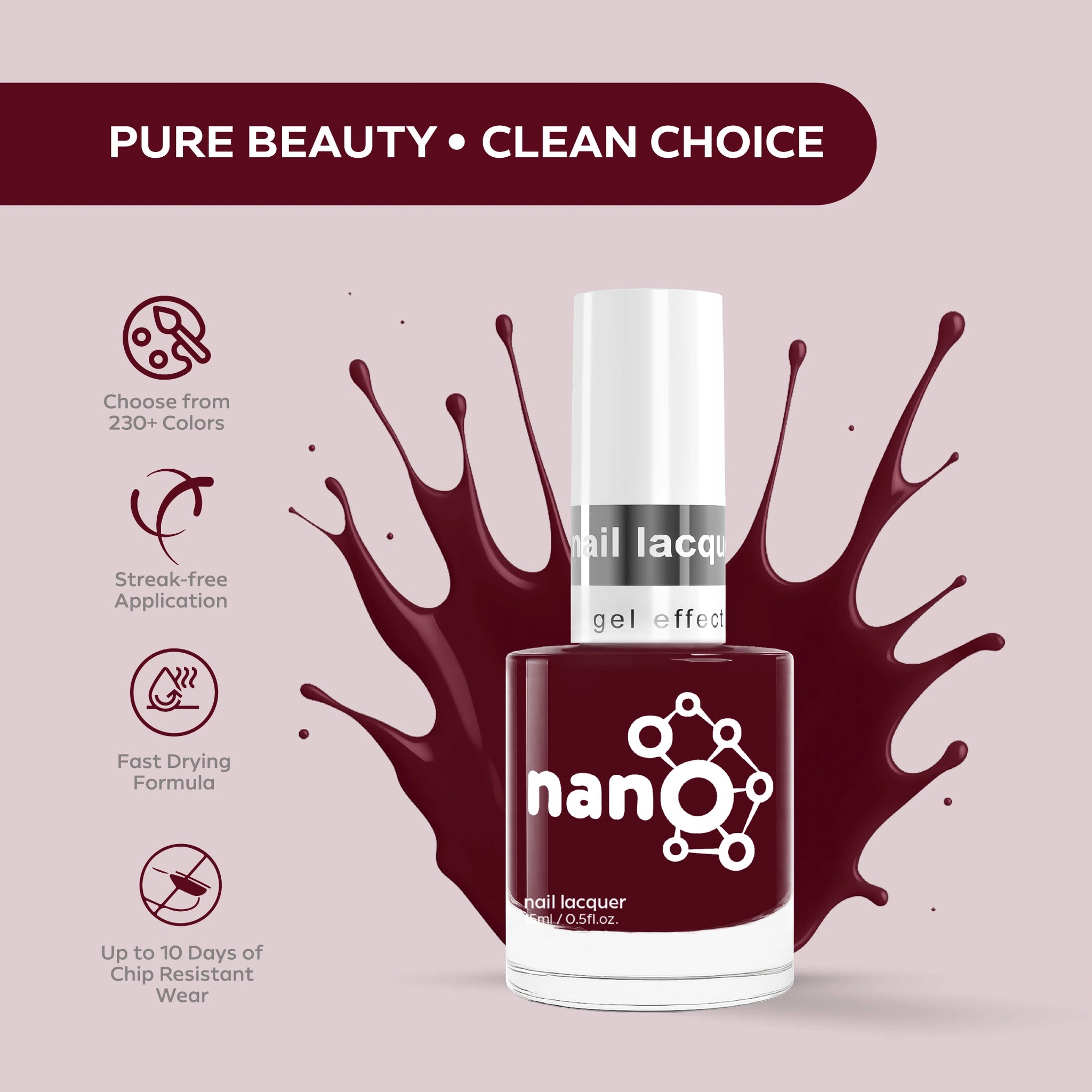 - تعتبر طلاءات Nano® نباتية بنسبة 100%، وخالية من القسوة، وخالية من السموم 9، مما يضمن الالتزام بالجمال الأخلاقي.