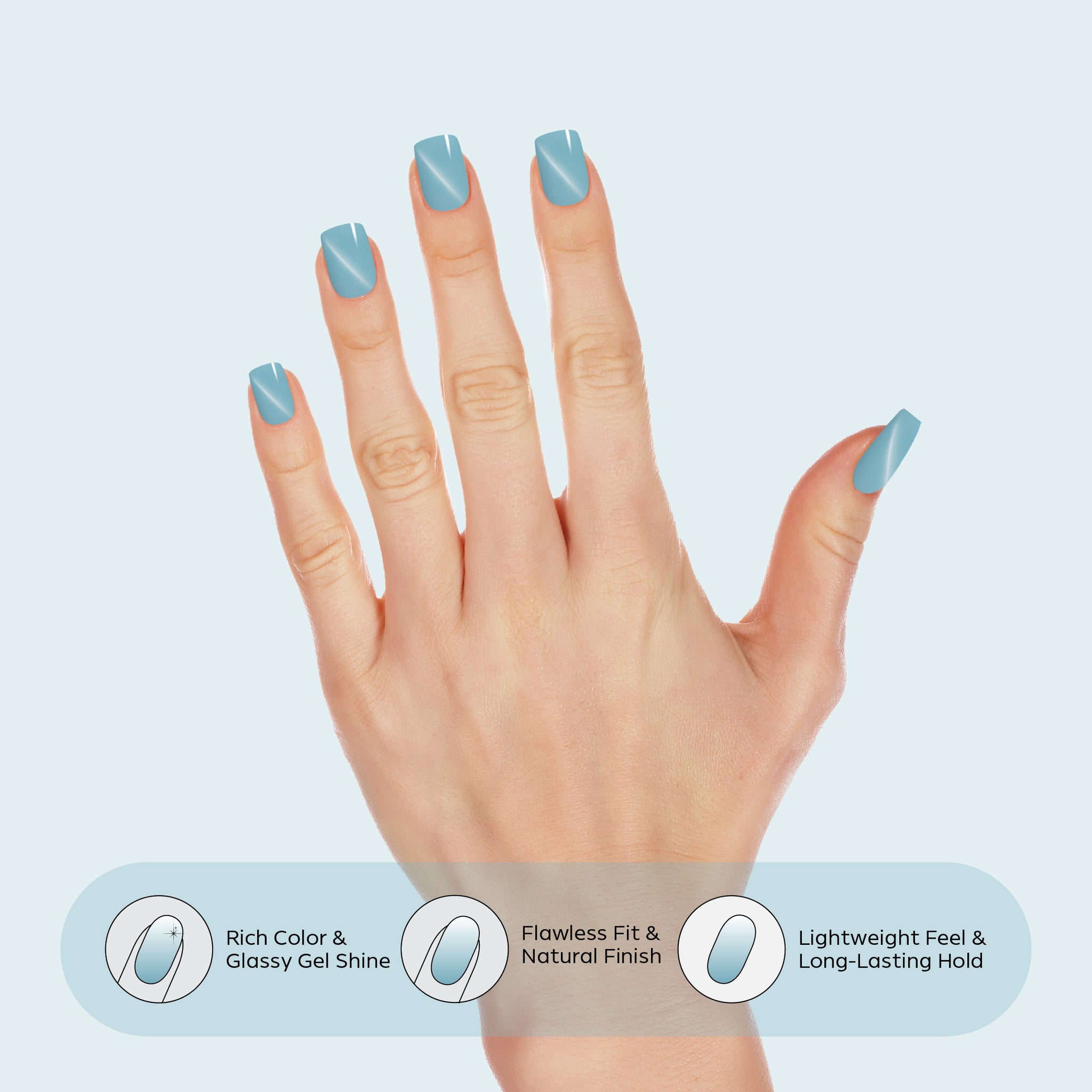 Nano® Glacier Cat Gleam Pressed on Nails - 24pcs with Glue | Instant Gel-Like Shine, Icy Blue Chrome Fake Nails Set