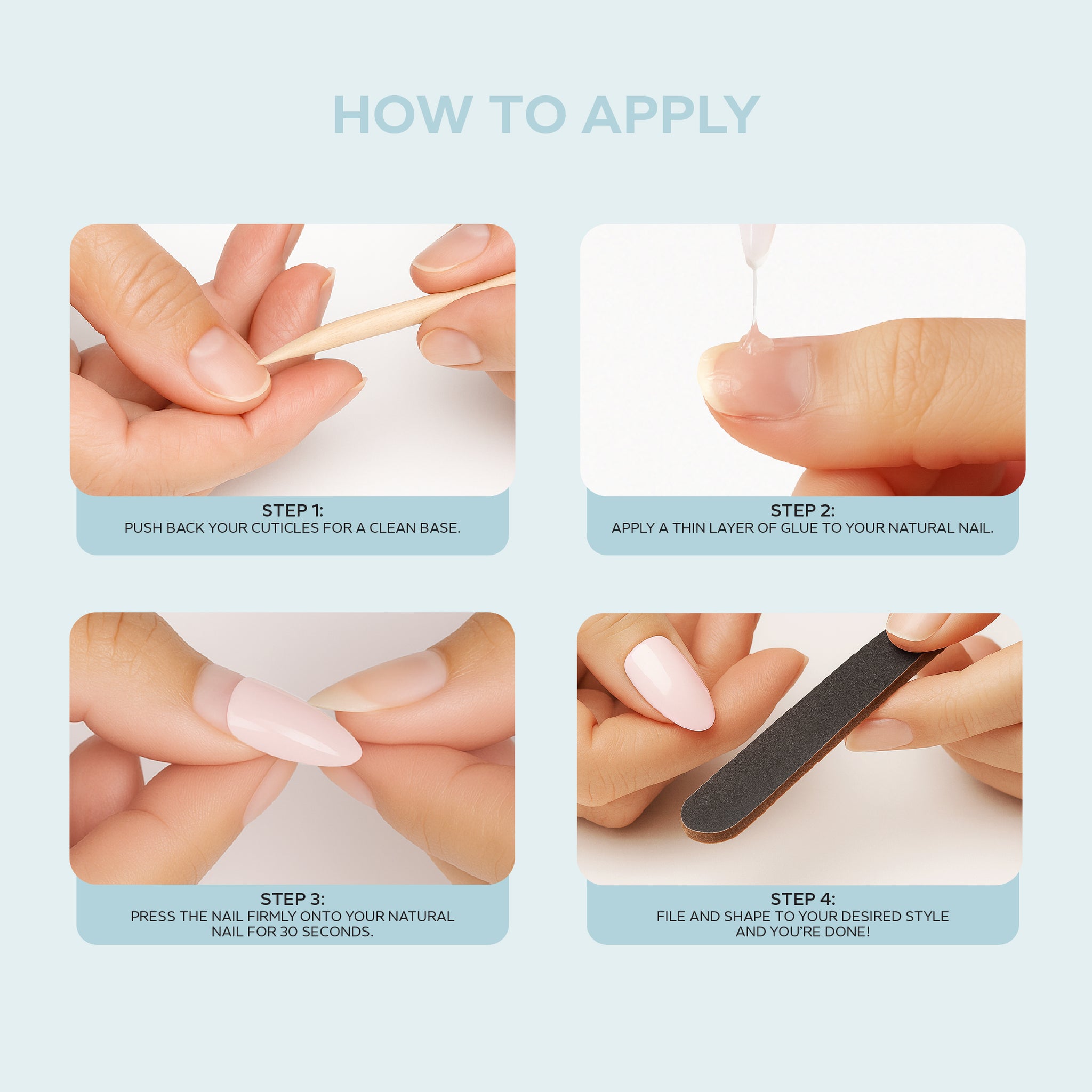 - Instant Application: Pre-shaped and ready-to-wear press-ons that apply easily with the included glue.