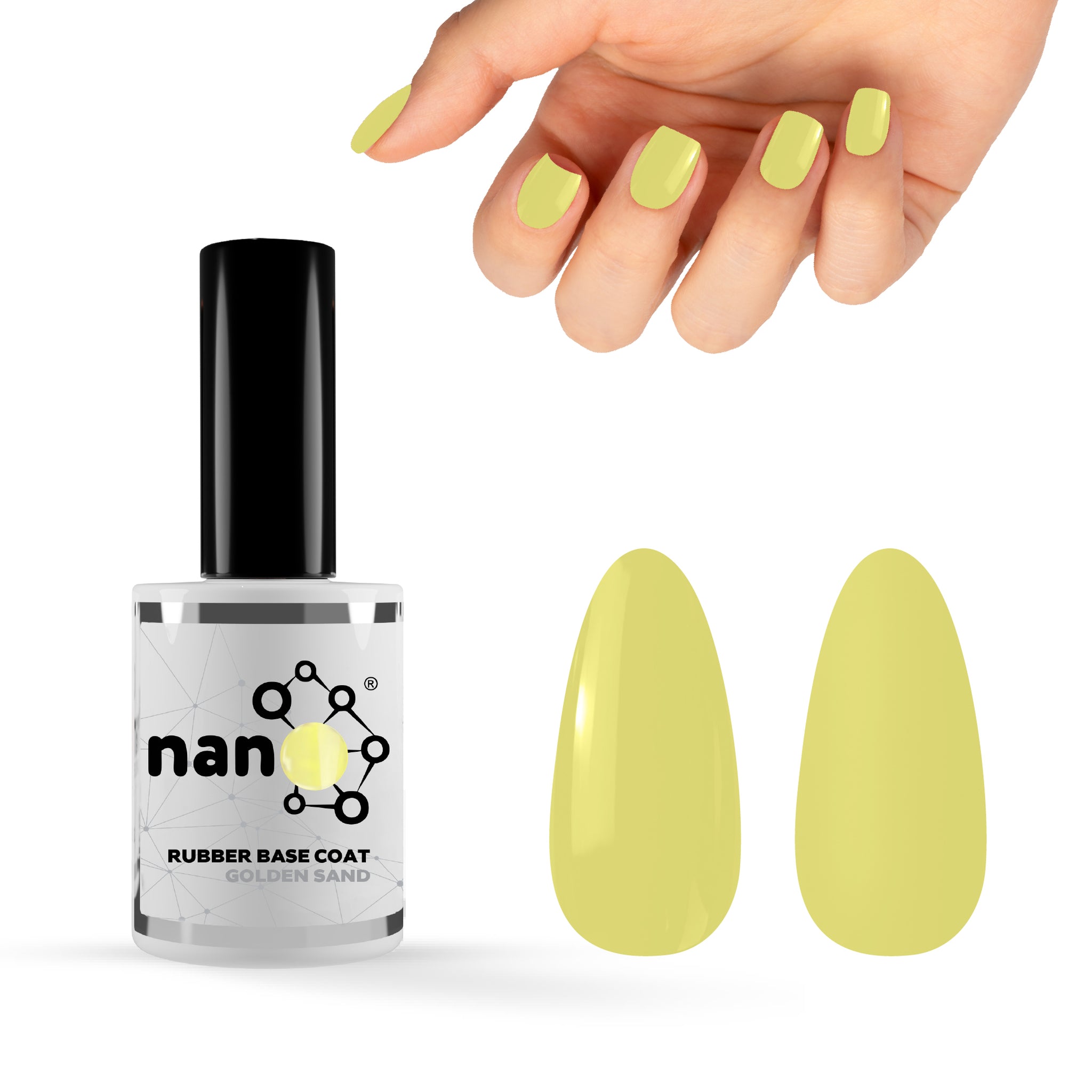 - ثم ضعي طبقة رقيقة من طلاء القاعدة المطاطي Nano® (بناء، متوسط أو خفيف حسب اختيارك) على الأظافر المحضرة.