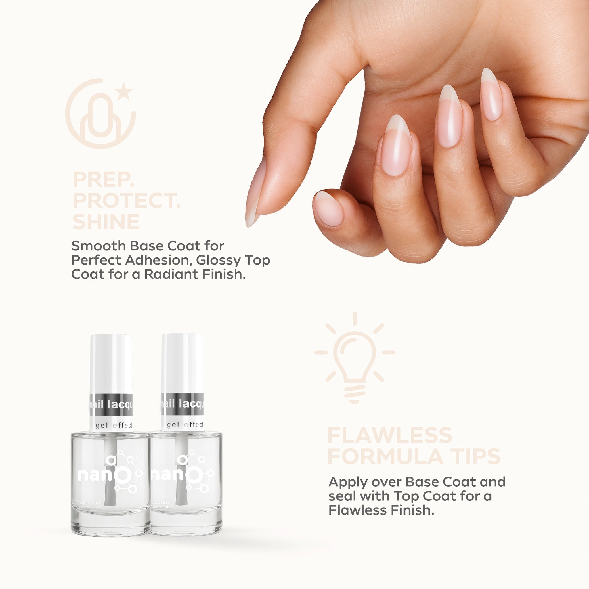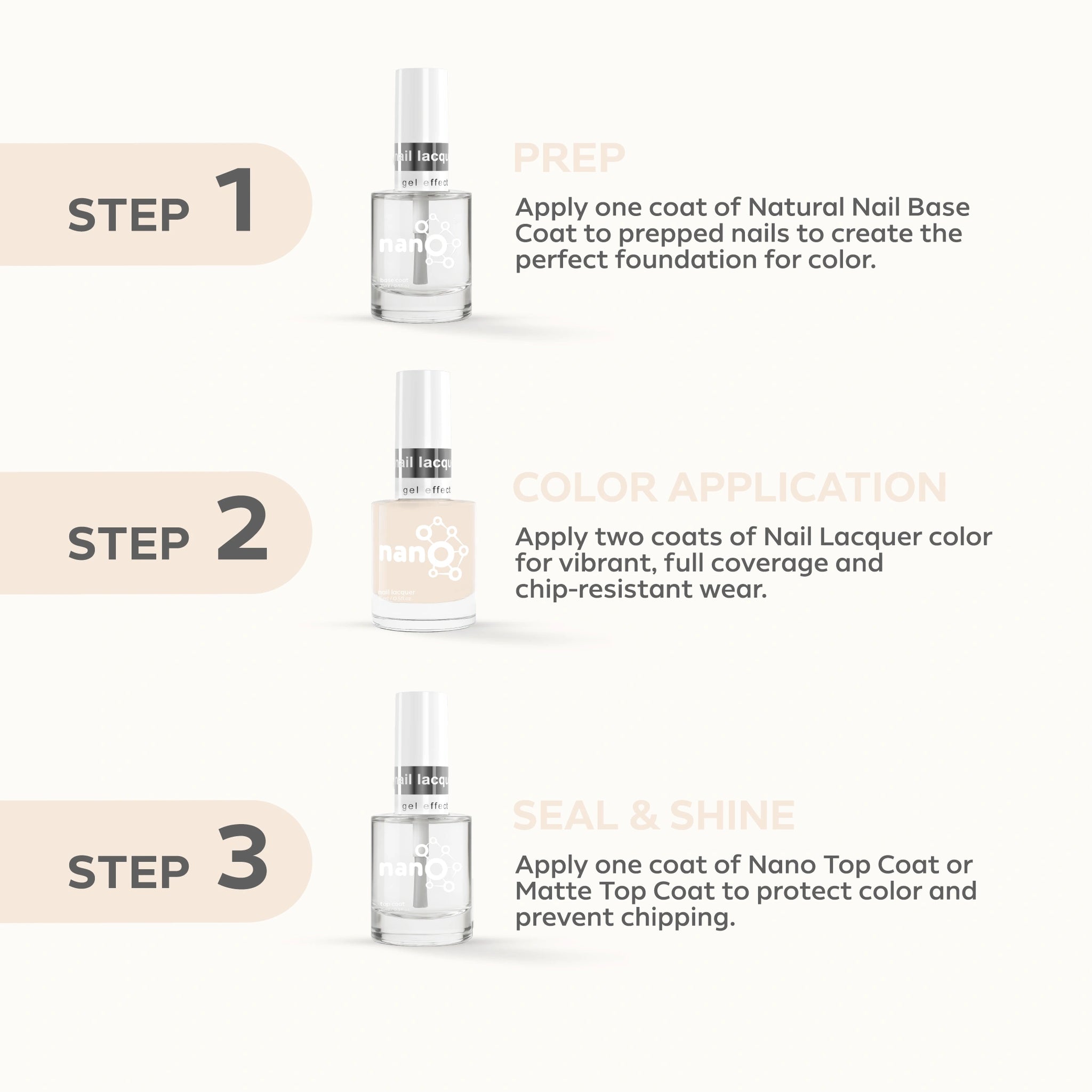 - ضعي طبقة القاعدة Nano® / Light Builder المفضلة لديك على الأظافر النظيفة وجففيها تحت مصباح Nano® Bright UV/LED لمدة 60 ثانية.