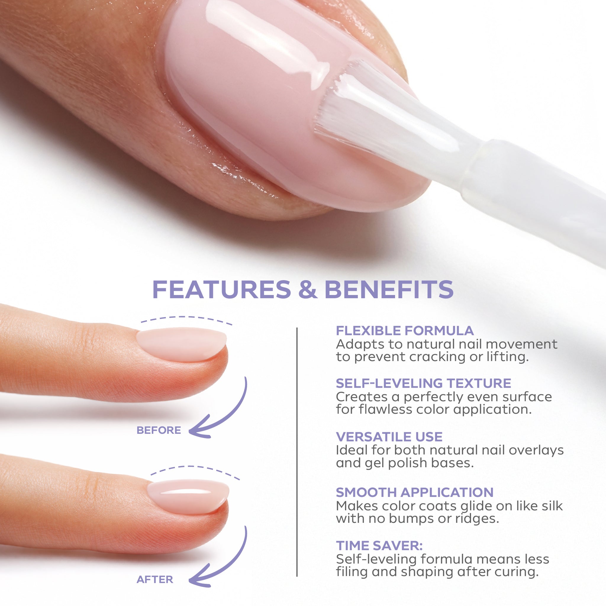 - يتكيف مع حركة الأظافر، مما يقلل من خطر رفع طلاء الجل أو كسره.