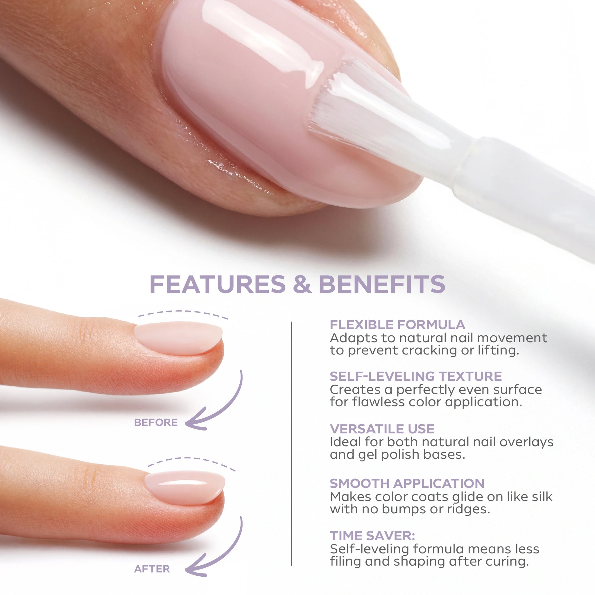 - يتكيف مع حركة الأظافر، مما يقلل من خطر رفع طلاء الجل أو كسره.
