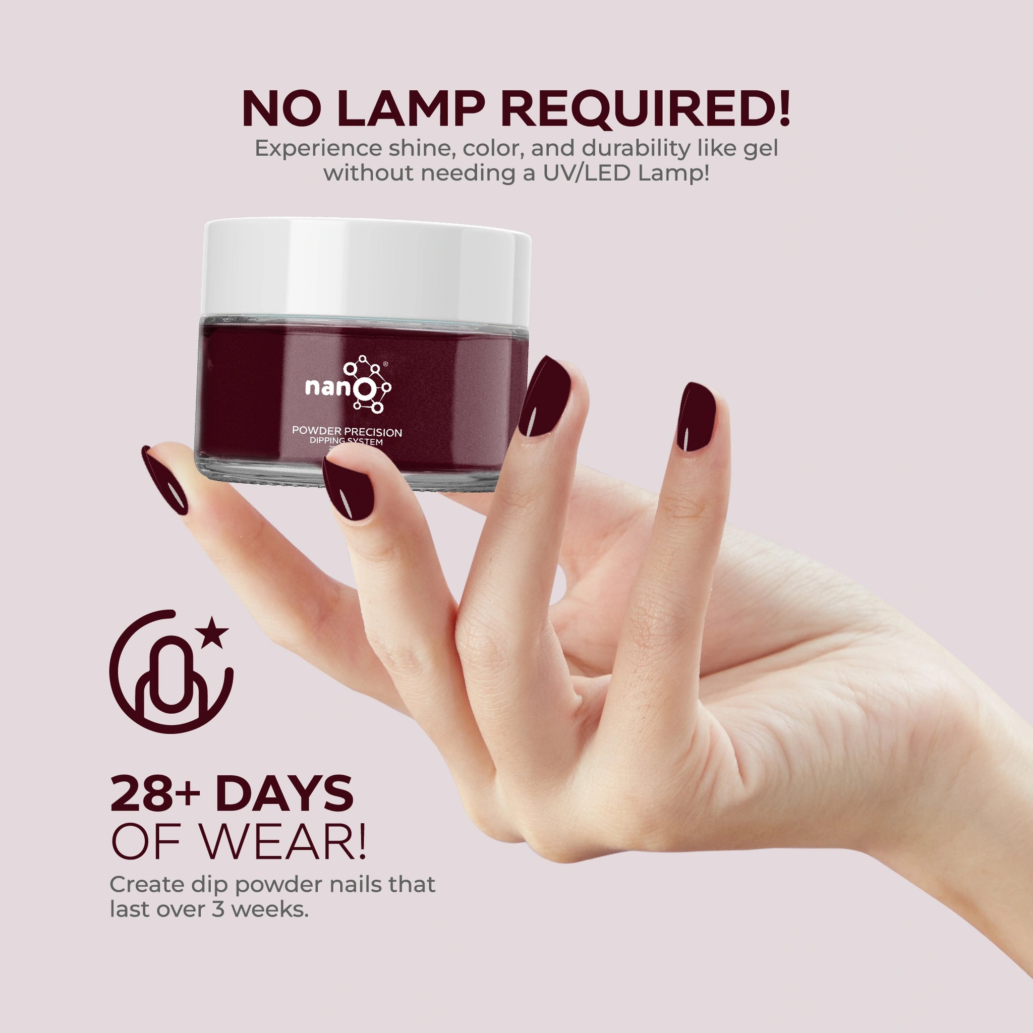 • احصلي على لمسة نهائية بجودة الصالون باستخدام نظام مسحوق الغمس البسيط وسهل الاستخدام.
