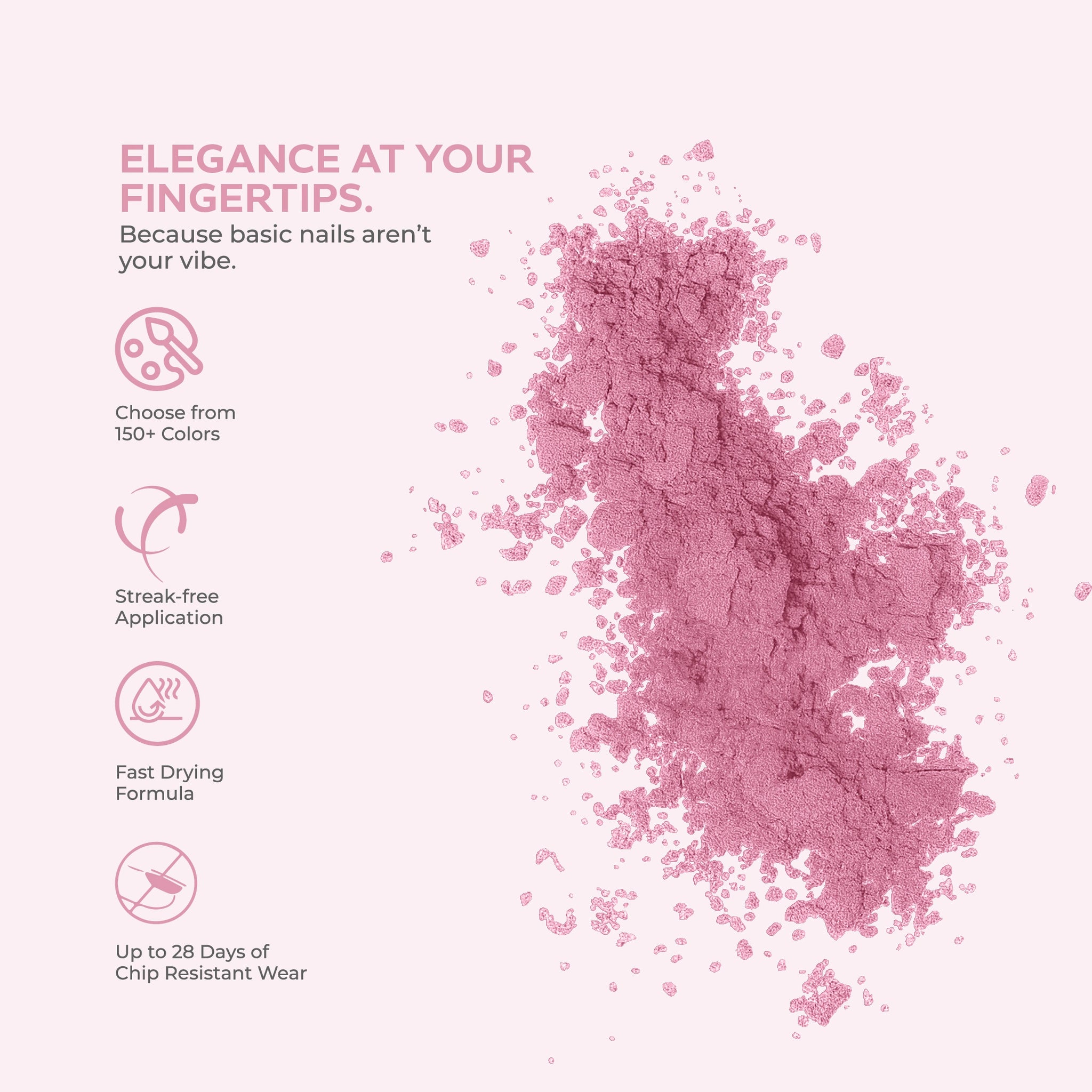 - يوفر مانيكيرًا يدوم طويلًا وخاليًا من التشقق، ويمكن أن يستمر لمدة تصل إلى 3-4 أسابيع.