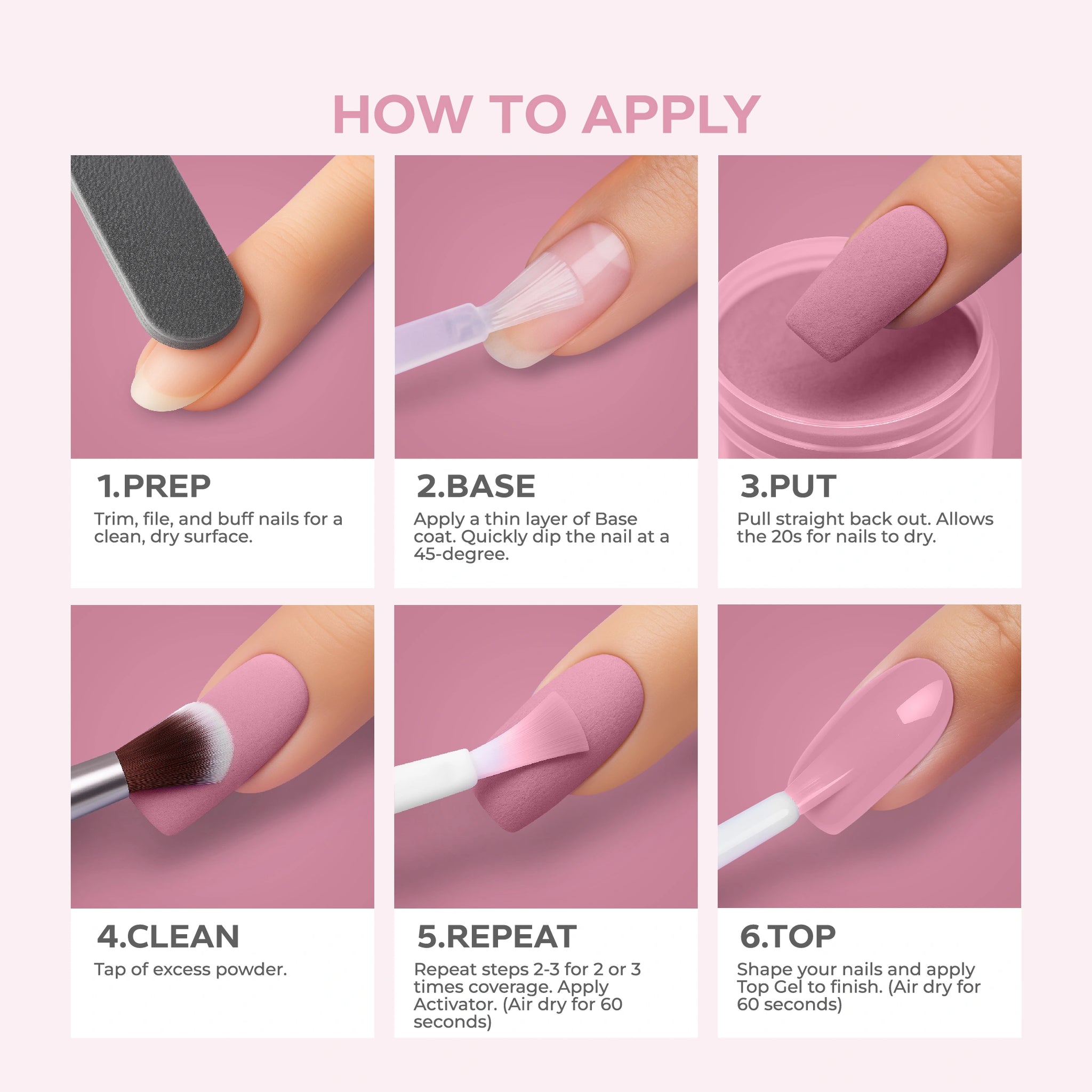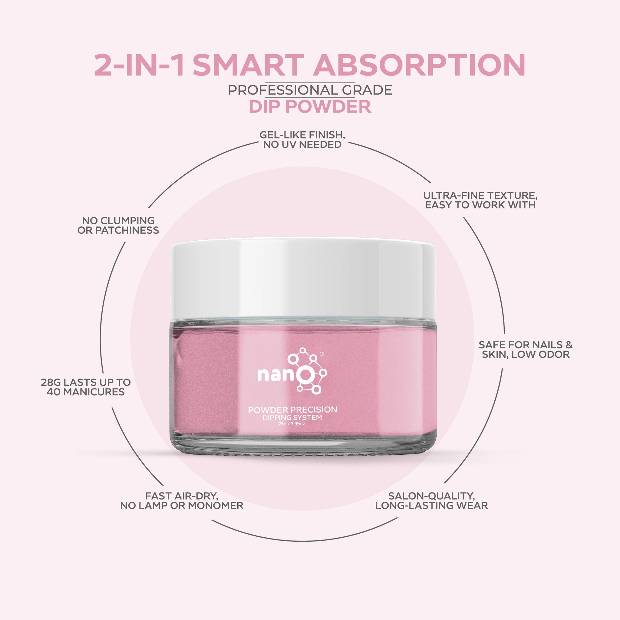 • احصلي على لمسة نهائية بجودة الصالون باستخدام نظام مسحوق الغمس البسيط وسهل الاستخدام.