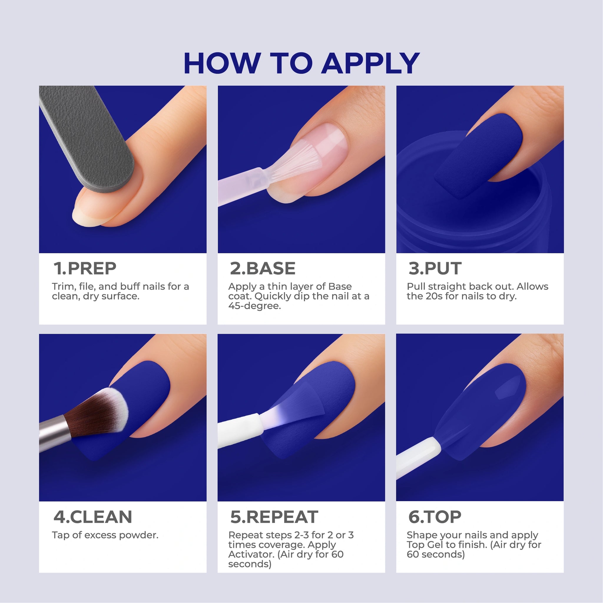 • احصلي على لمسة نهائية بجودة الصالون باستخدام نظام مسحوق الغمس البسيط وسهل الاستخدام.