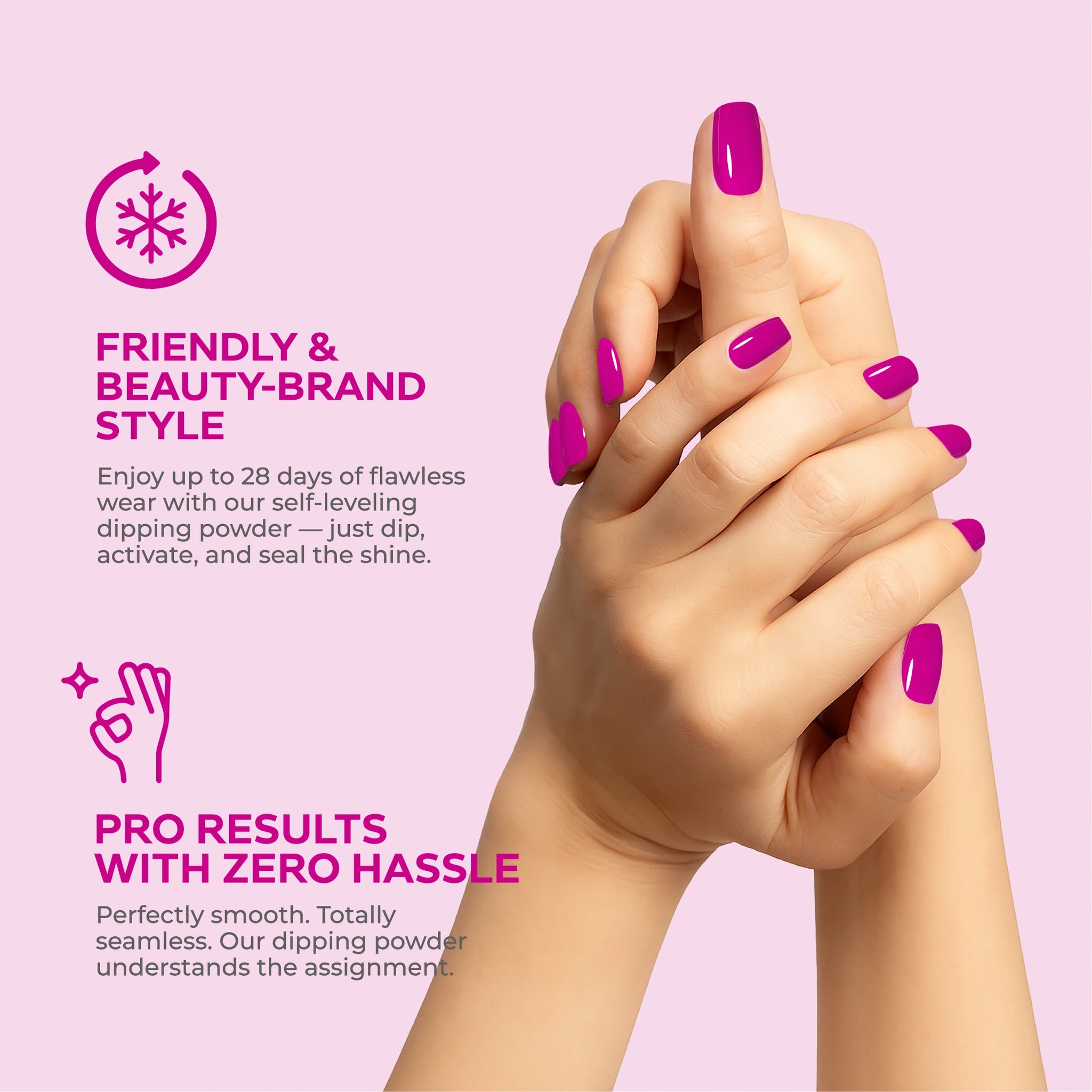 • احصلي على لمسة نهائية بجودة الصالون باستخدام نظام مسحوق الغمس البسيط وسهل الاستخدام.