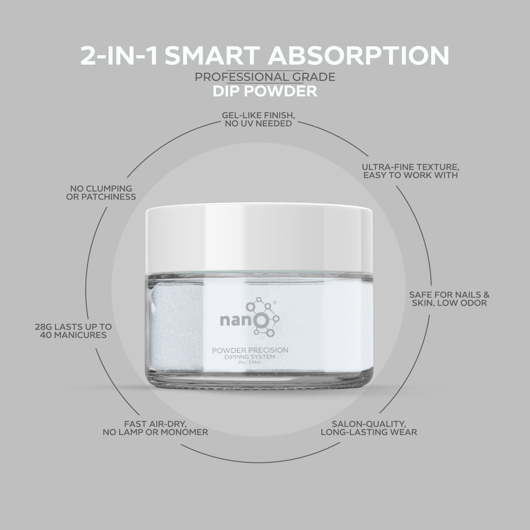 • احصلي على لمسة نهائية بجودة الصالون باستخدام نظام مسحوق الغمس البسيط وسهل الاستخدام.