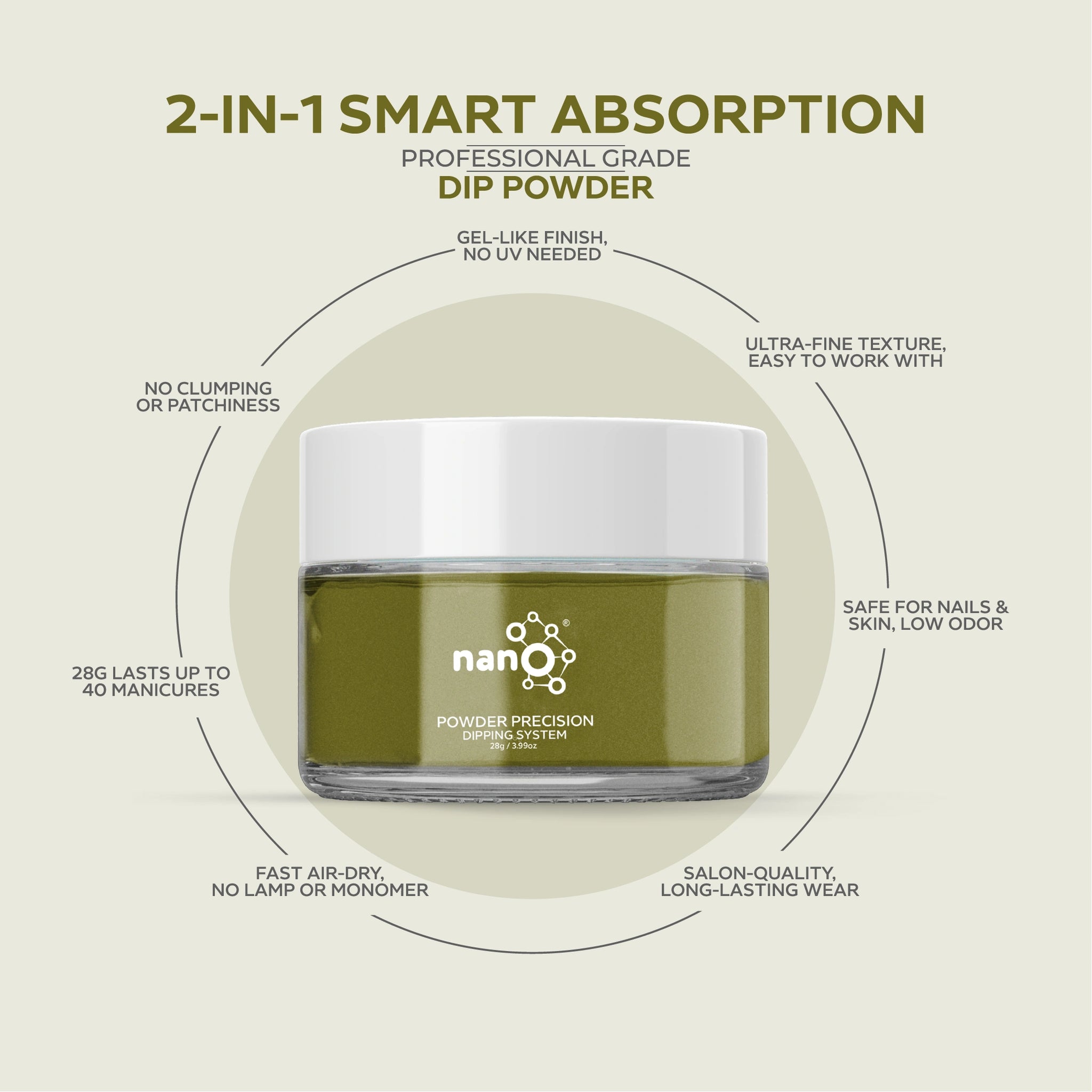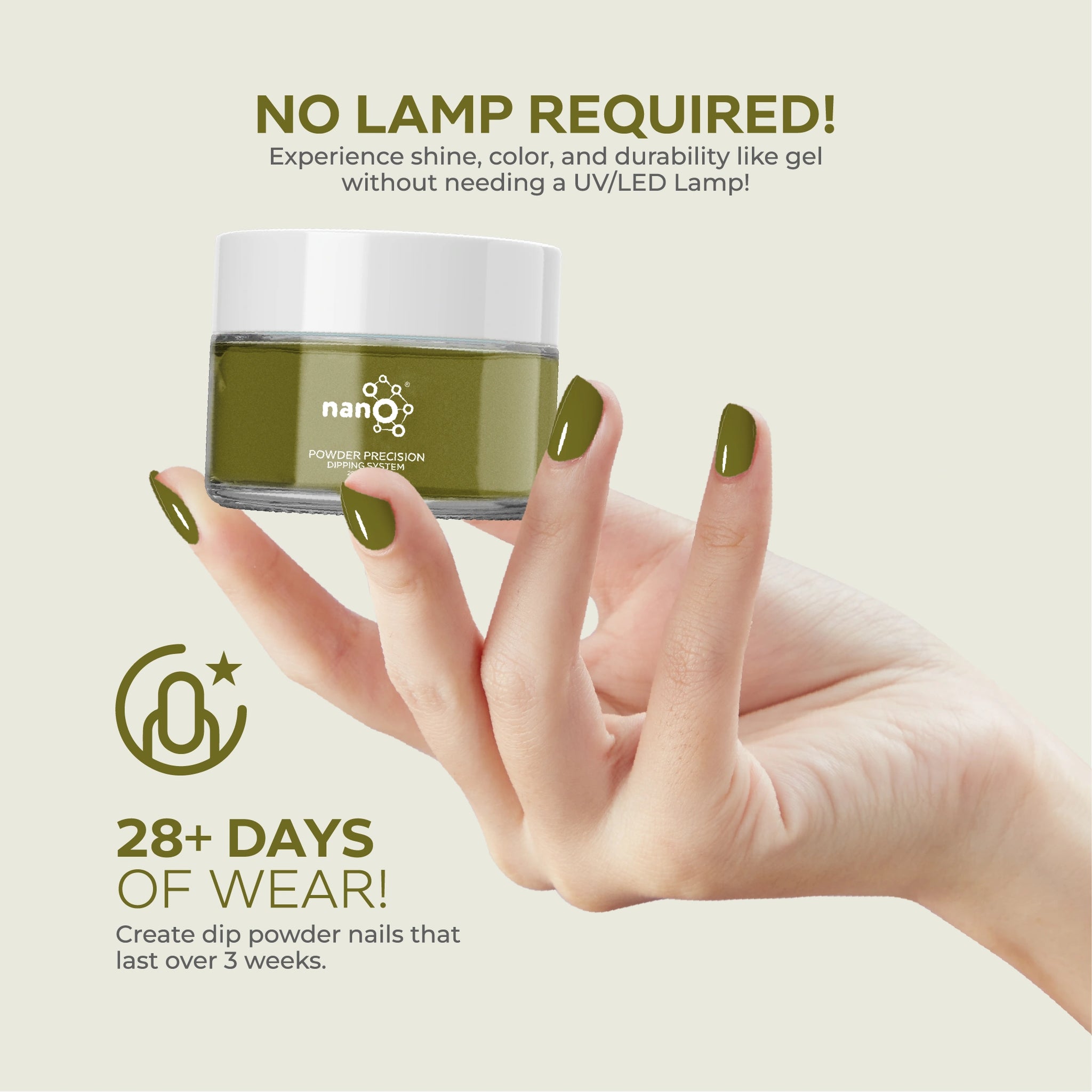 • احصلي على لمسة نهائية بجودة الصالون باستخدام نظام مسحوق الغمس البسيط وسهل الاستخدام.