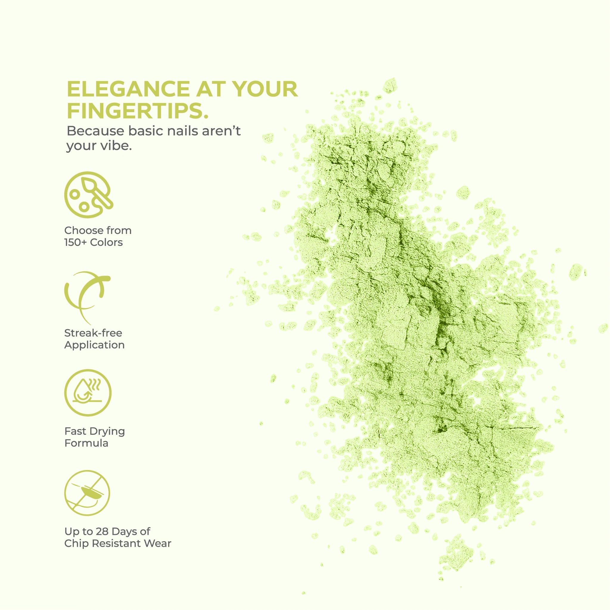 - يوفر مانيكيرًا يدوم طويلًا وخاليًا من التشقق، ويمكن أن يستمر لمدة تصل إلى 3-4 أسابيع.