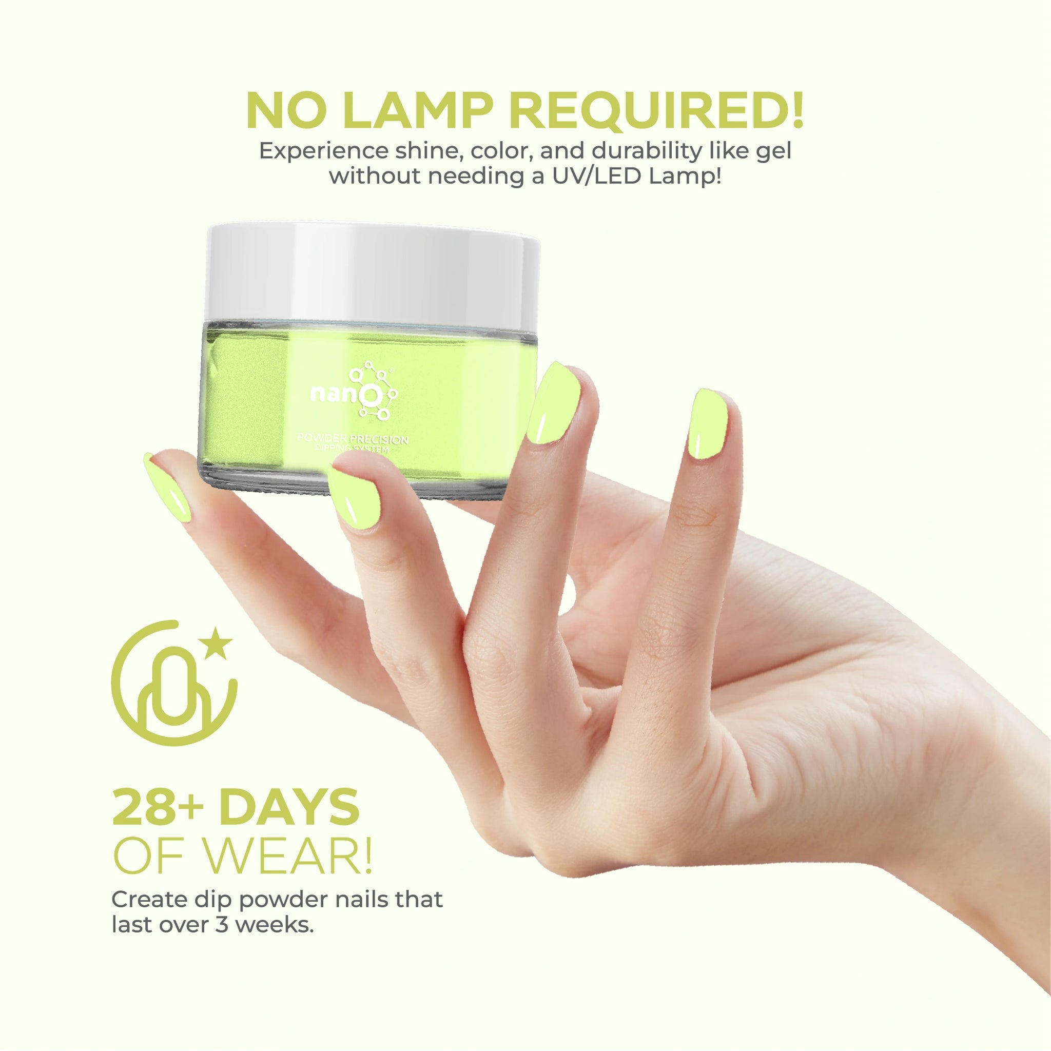 • احصلي على لمسة نهائية بجودة الصالون باستخدام نظام مسحوق الغمس البسيط وسهل الاستخدام.