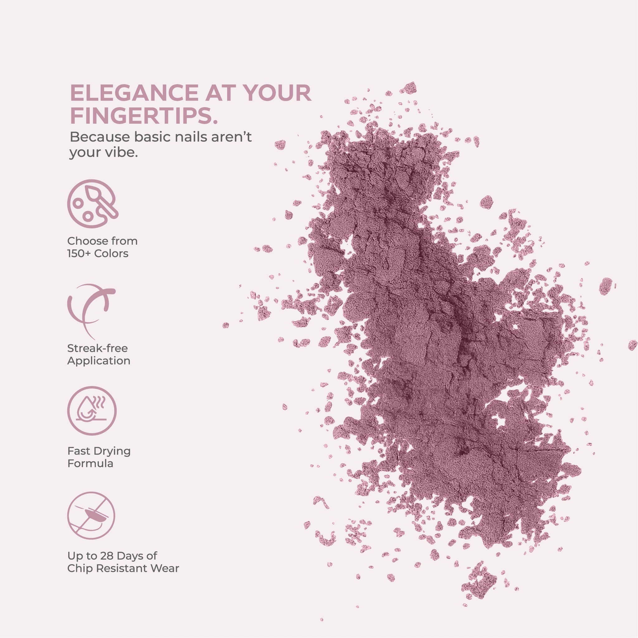 • احصلي على لمسة نهائية بجودة الصالون باستخدام نظام مسحوق الغمس البسيط وسهل الاستخدام.