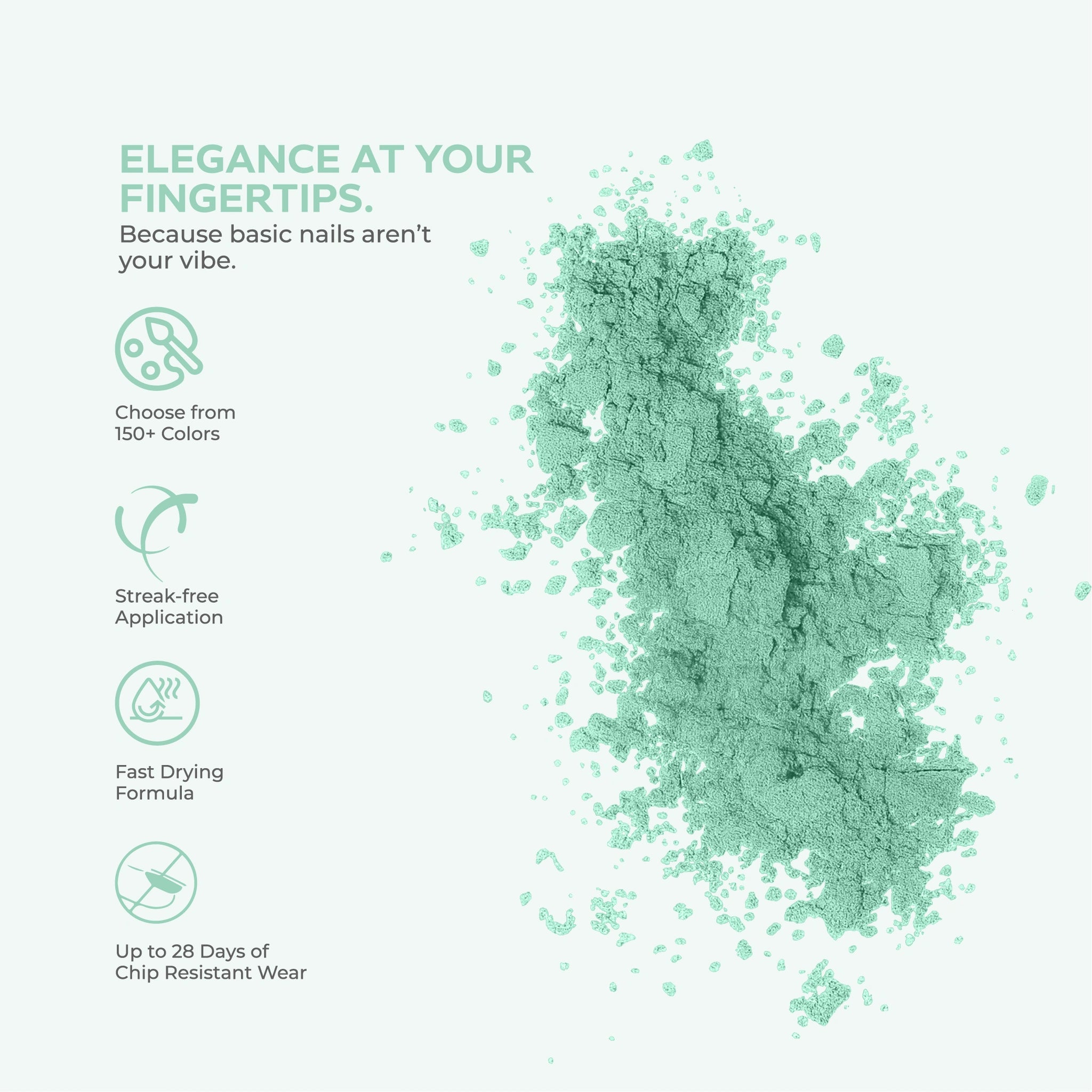• احصلي على لمسة نهائية بجودة الصالون باستخدام نظام مسحوق الغمس البسيط وسهل الاستخدام.