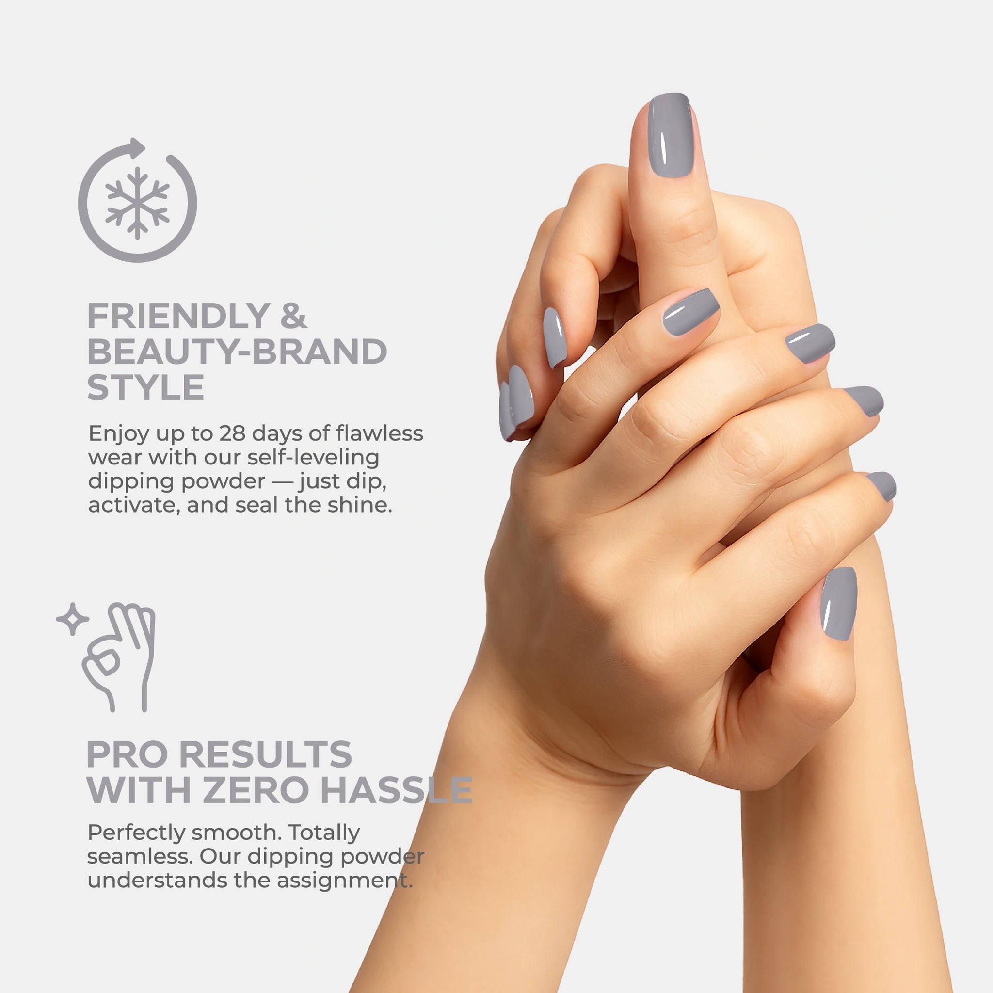 • احصلي على لمسة نهائية بجودة الصالون باستخدام نظام مسحوق الغمس البسيط وسهل الاستخدام.