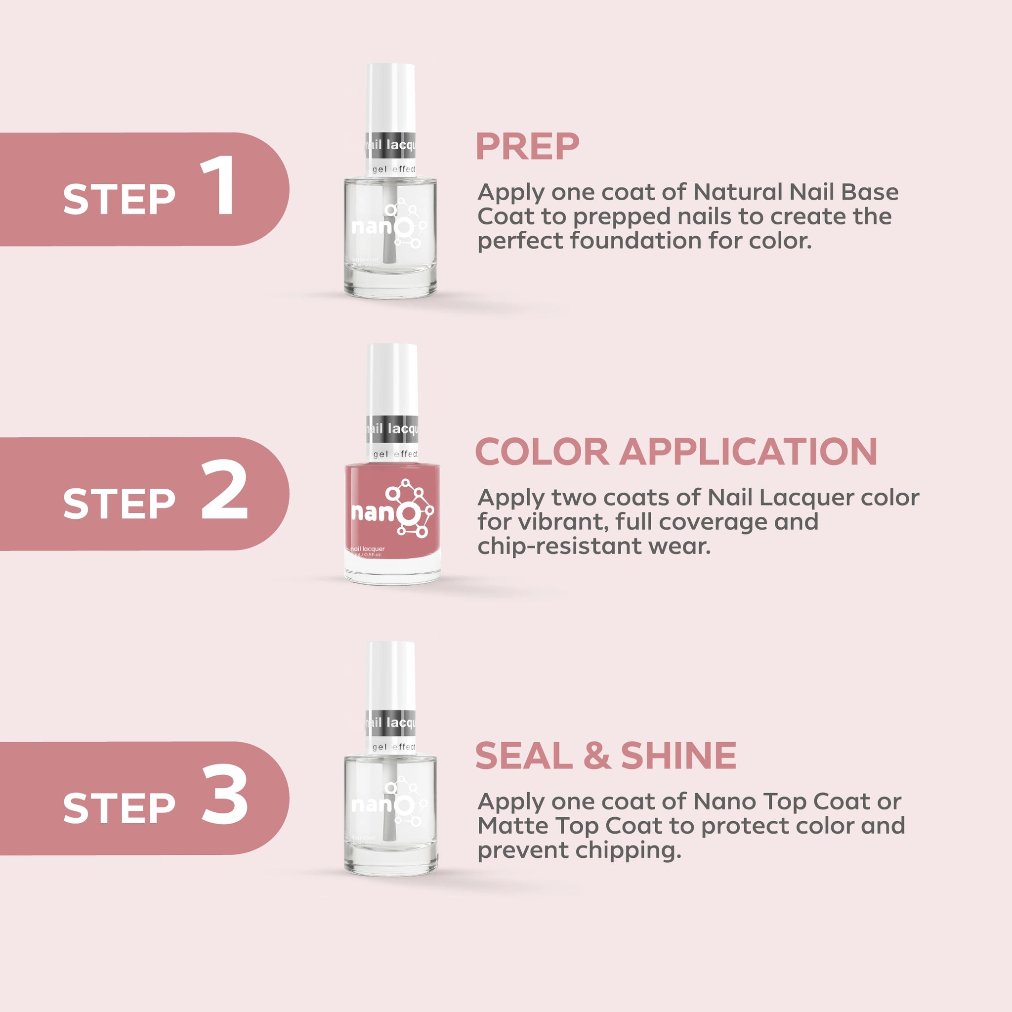 - متوافق مع جميع منتجات العناية بالأظافر Nano®.