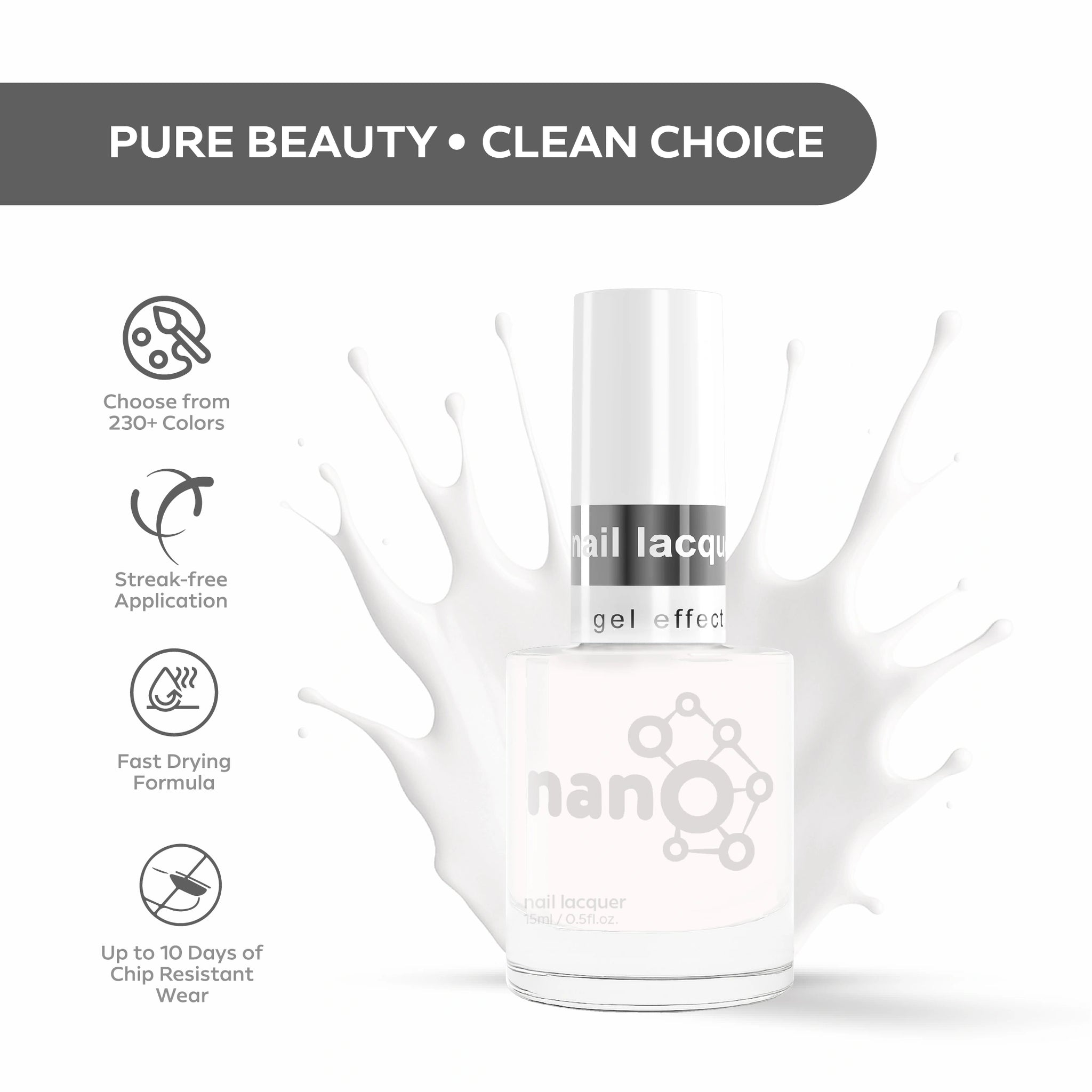 - تعتبر طلاءات Nano® نباتية بنسبة 100%، وخالية من القسوة، وخالية من السموم 9، مما يضمن الالتزام بالجمال الأخلاقي.