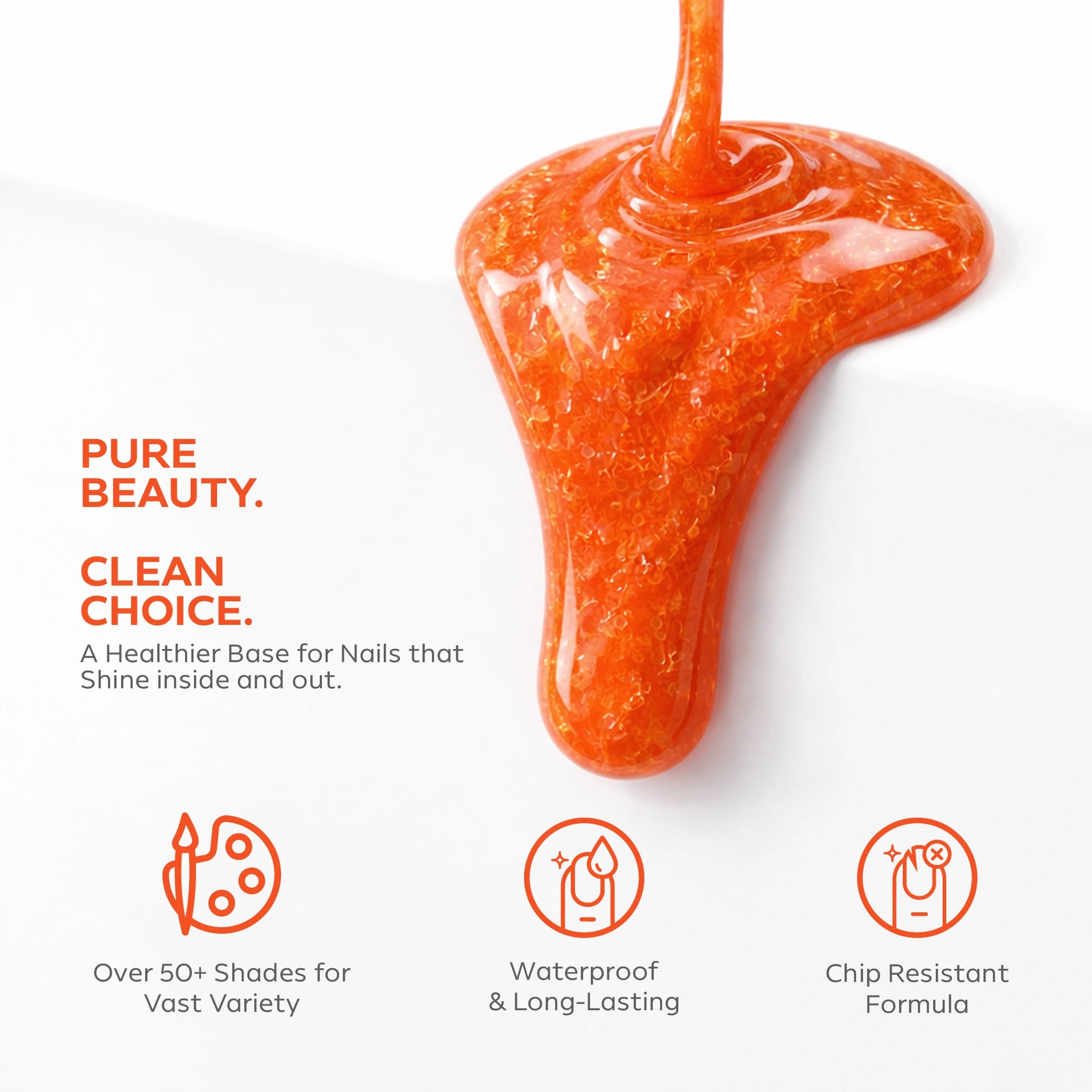 - يتميز باللون البرتقالي النابض بالحياة والعميق مع لون غني ودافئ، مثالي لإنشاء مانيكير مذهل ومتطور.