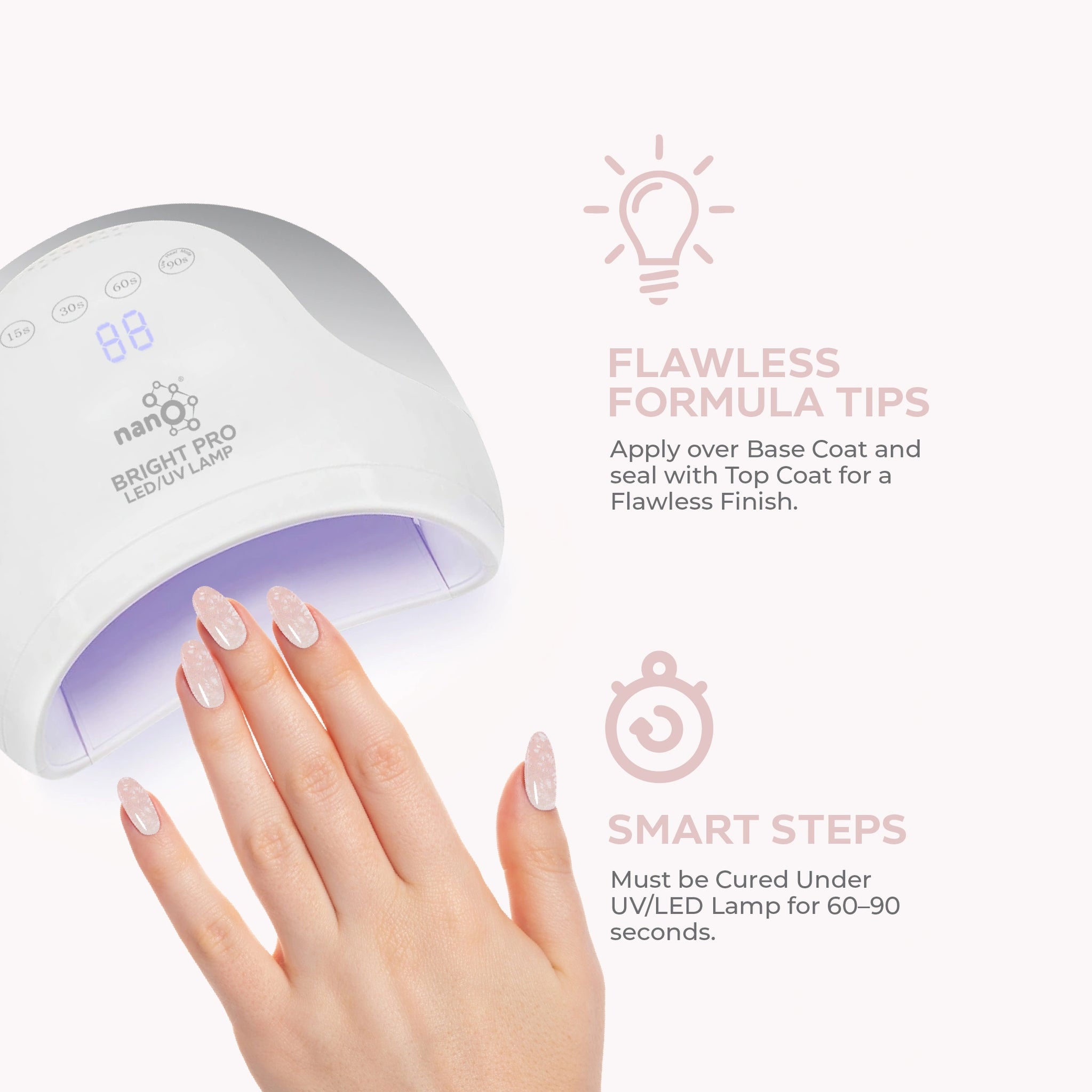 - ضعي طبقة القاعدة Nano® / Light Builder المفضلة لديك على الأظافر النظيفة وجففيها تحت مصباح Nano® Bright UV/LED لمدة 60 ثانية.