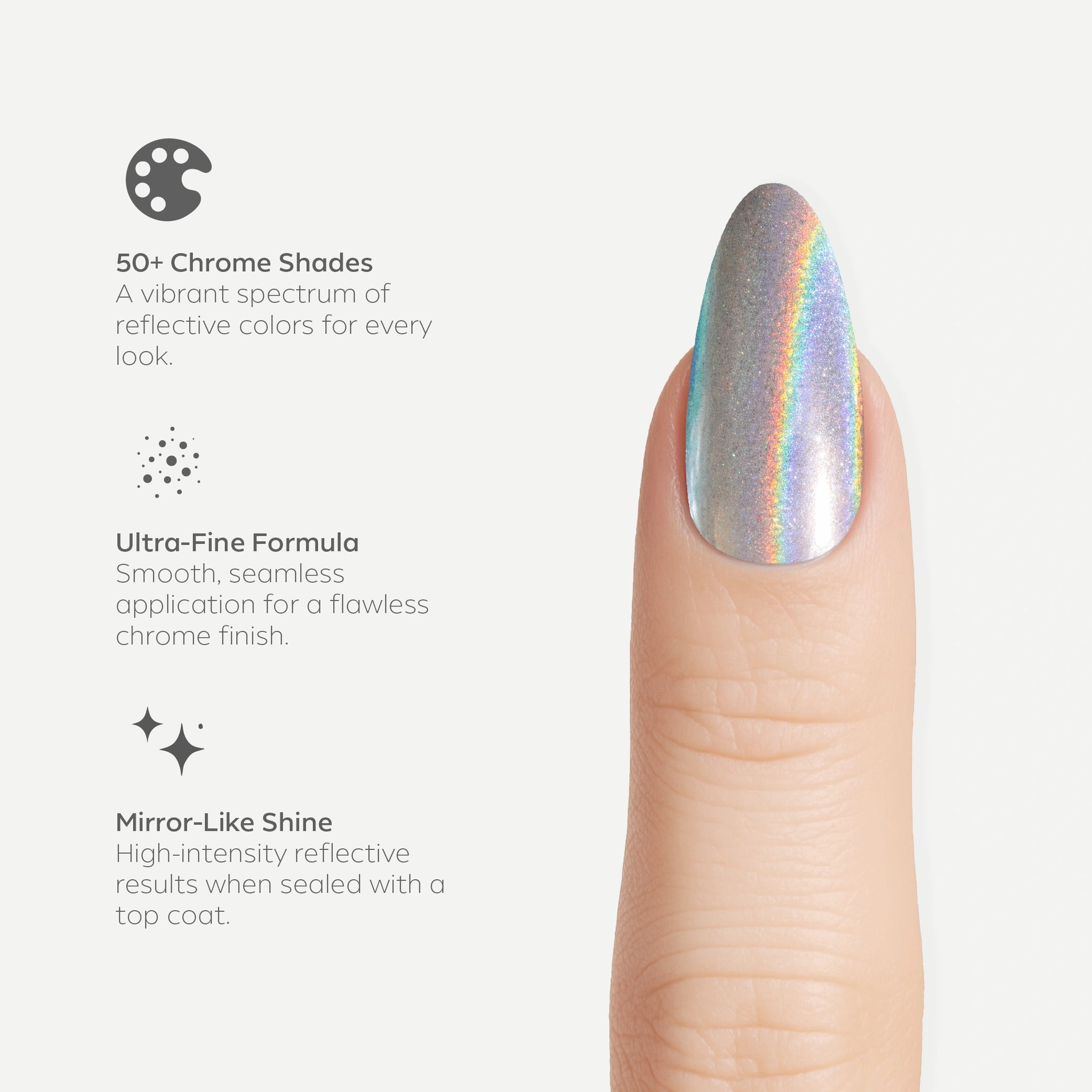 Ultra-Fine Chrome Pigment: Formulated with smooth, high-reflective particles that glide on effortlessly, creating a seamless metallic glow with intense shine.