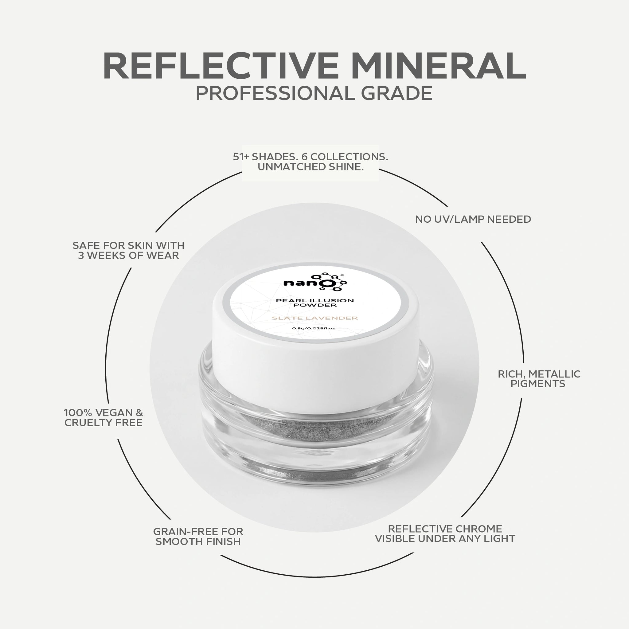 Soft Metallic Grey-Lavender Finish: Slate Lavender Chrome Powder delivers a dreamy blend of grey and lavender tones with a sleek mirror effect—perfect for elevated, modern nail designs.