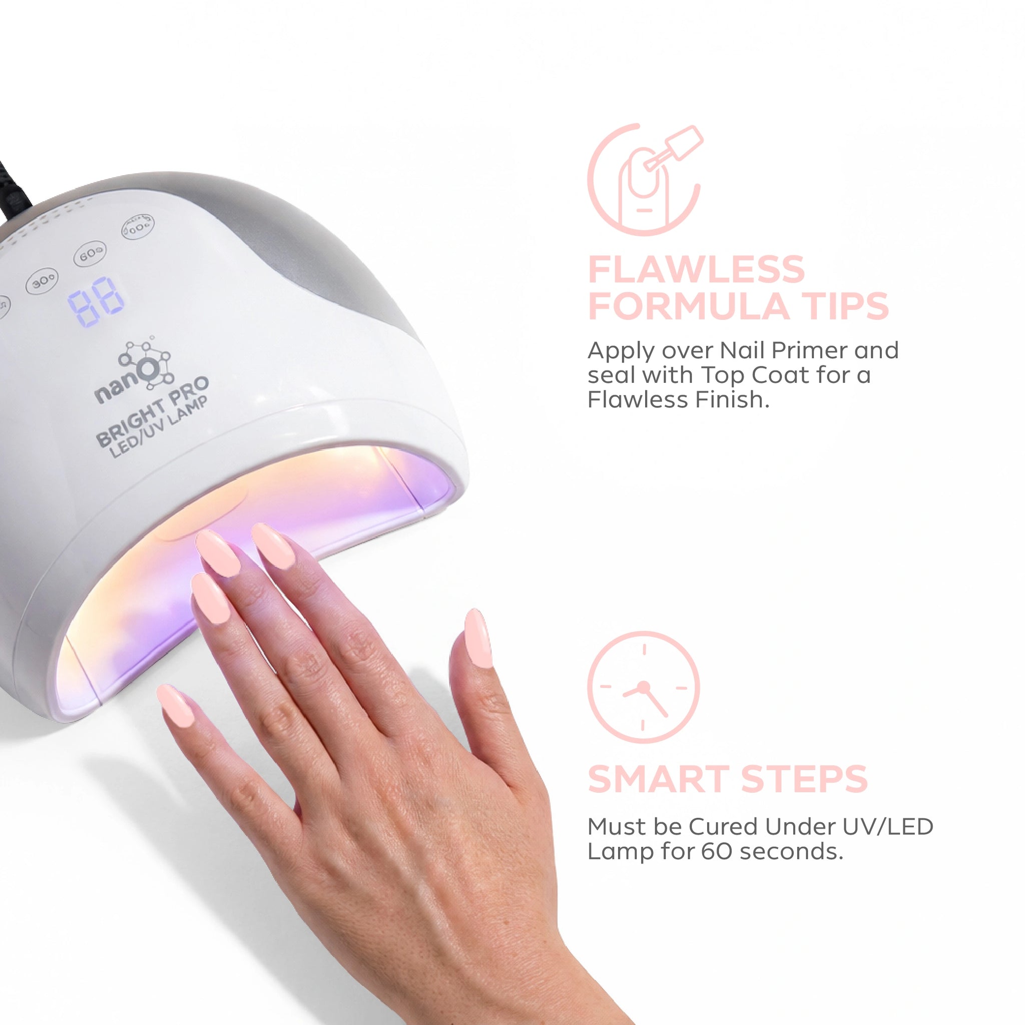 - قم بتجفيف الطبقة الأساسية تحت مصباح Nano® Bright UV/LED لمدة 45-60 ثانية.