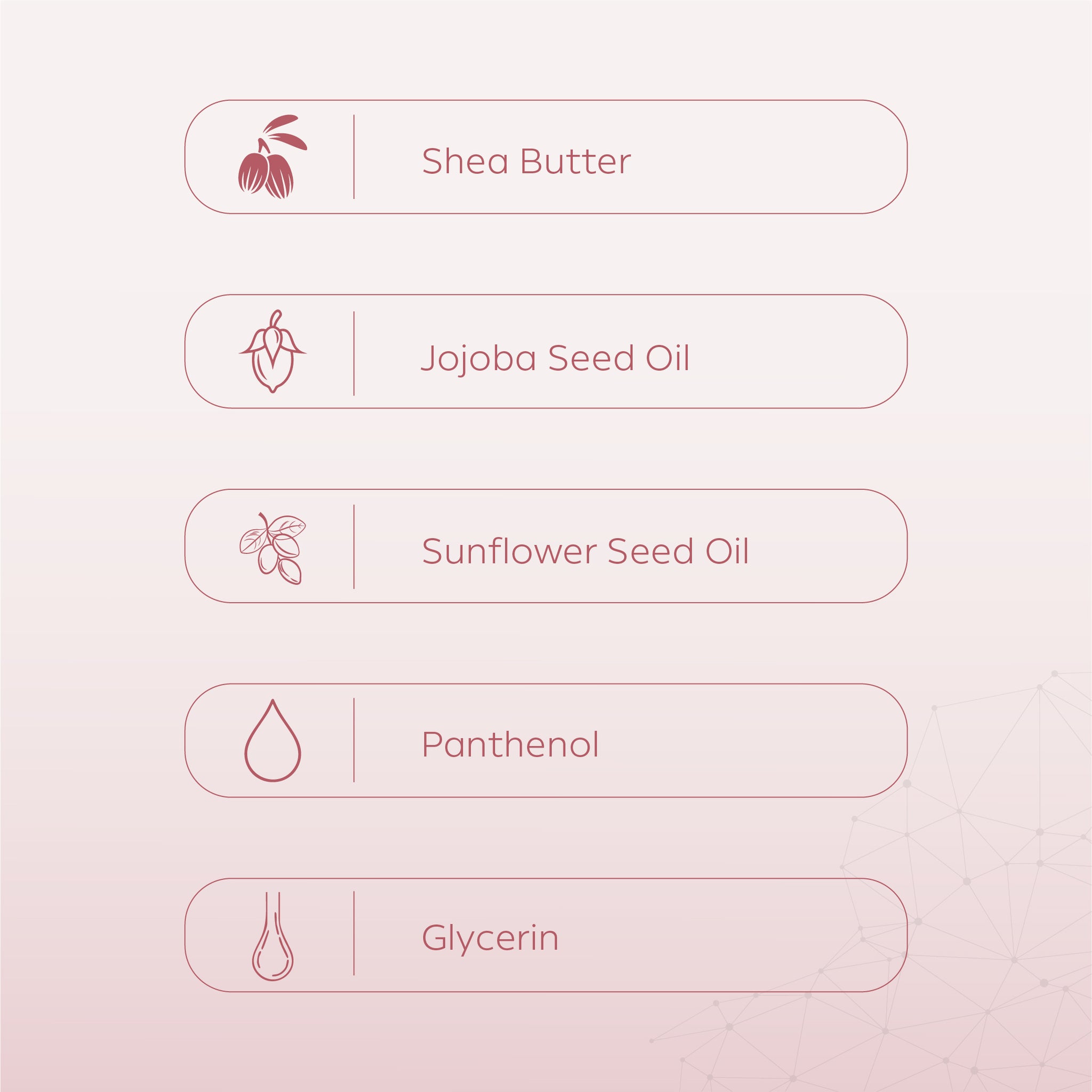 • Formulated with Shea Butter, Jojoba Oil, and Sunflower Seed Oil to restore moisture and strengthen the skin’s protective barrier.