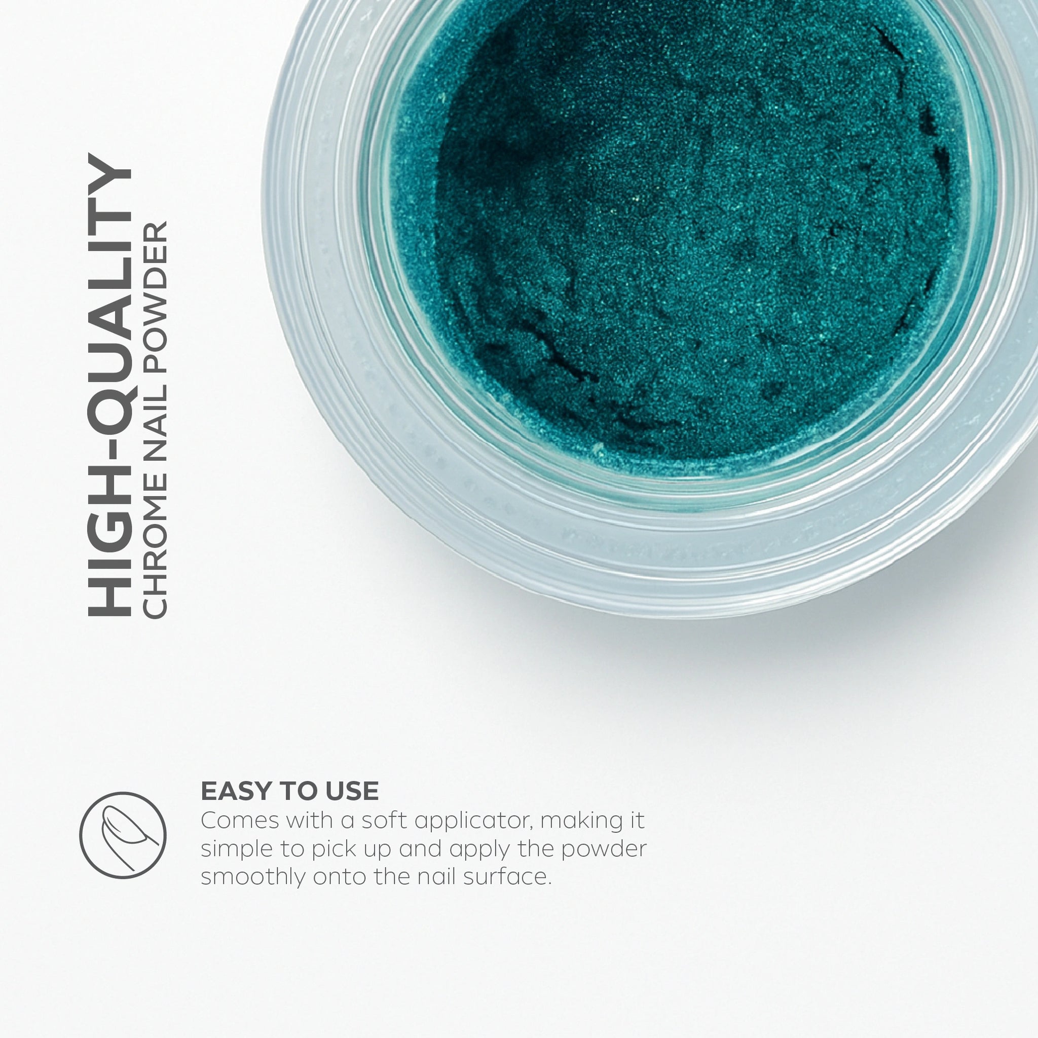 Azure Blue Chrome Powder – 0.8g | Mirror Chrome Powder Nails | Metallic Teal-Blue Chrome Nail Powder