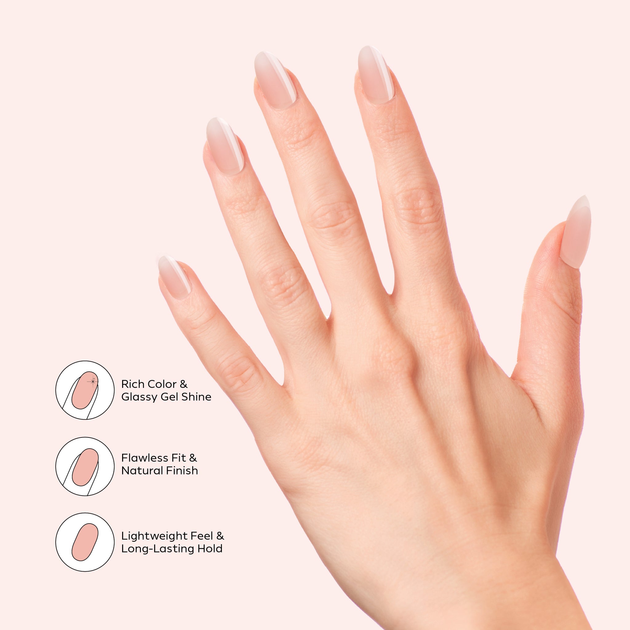 Nano® Ballet Slipper Pressed on Nails - 24pcs Self-Adhesive | Soft Pink Nude Finish, Glossy Natural Fake Nails Set