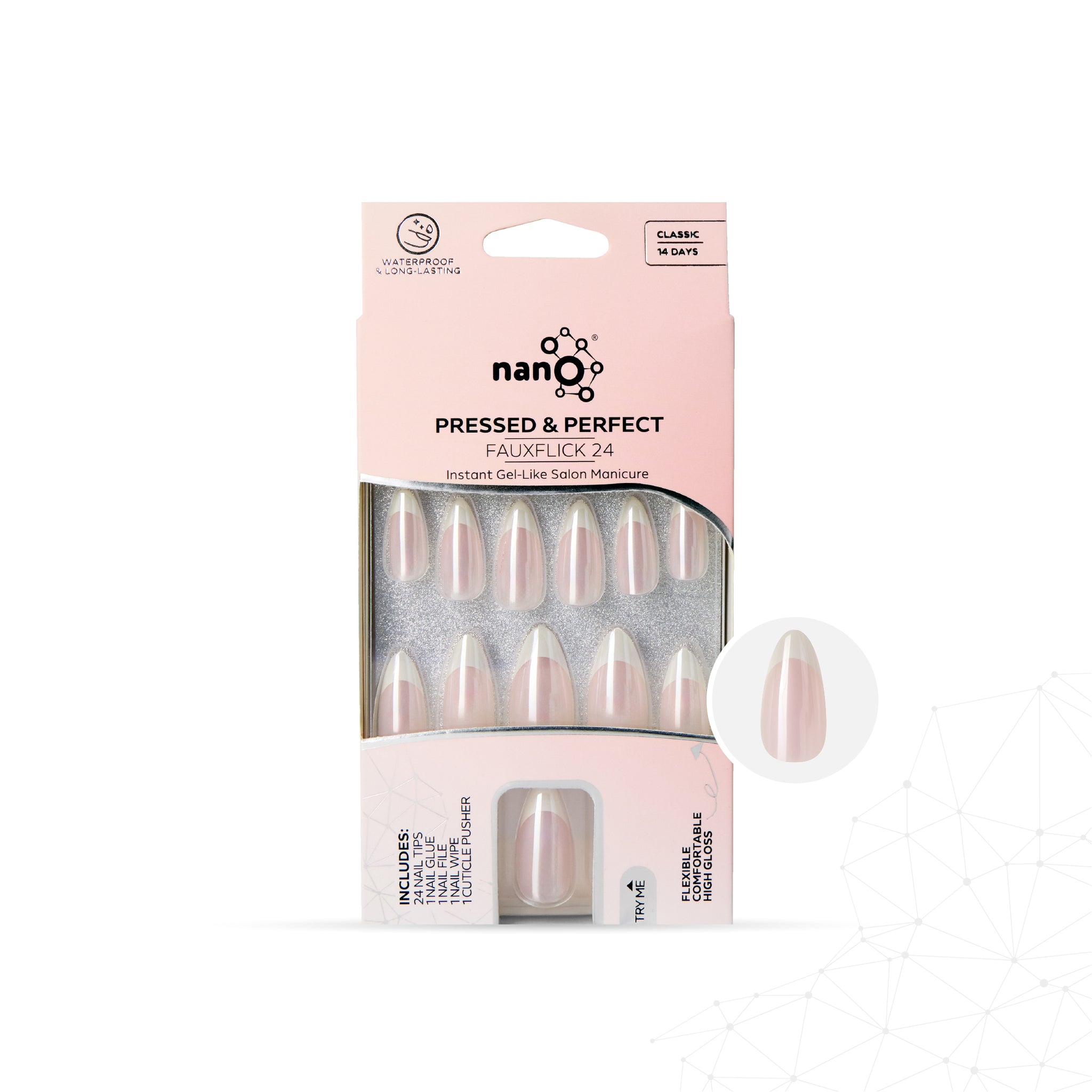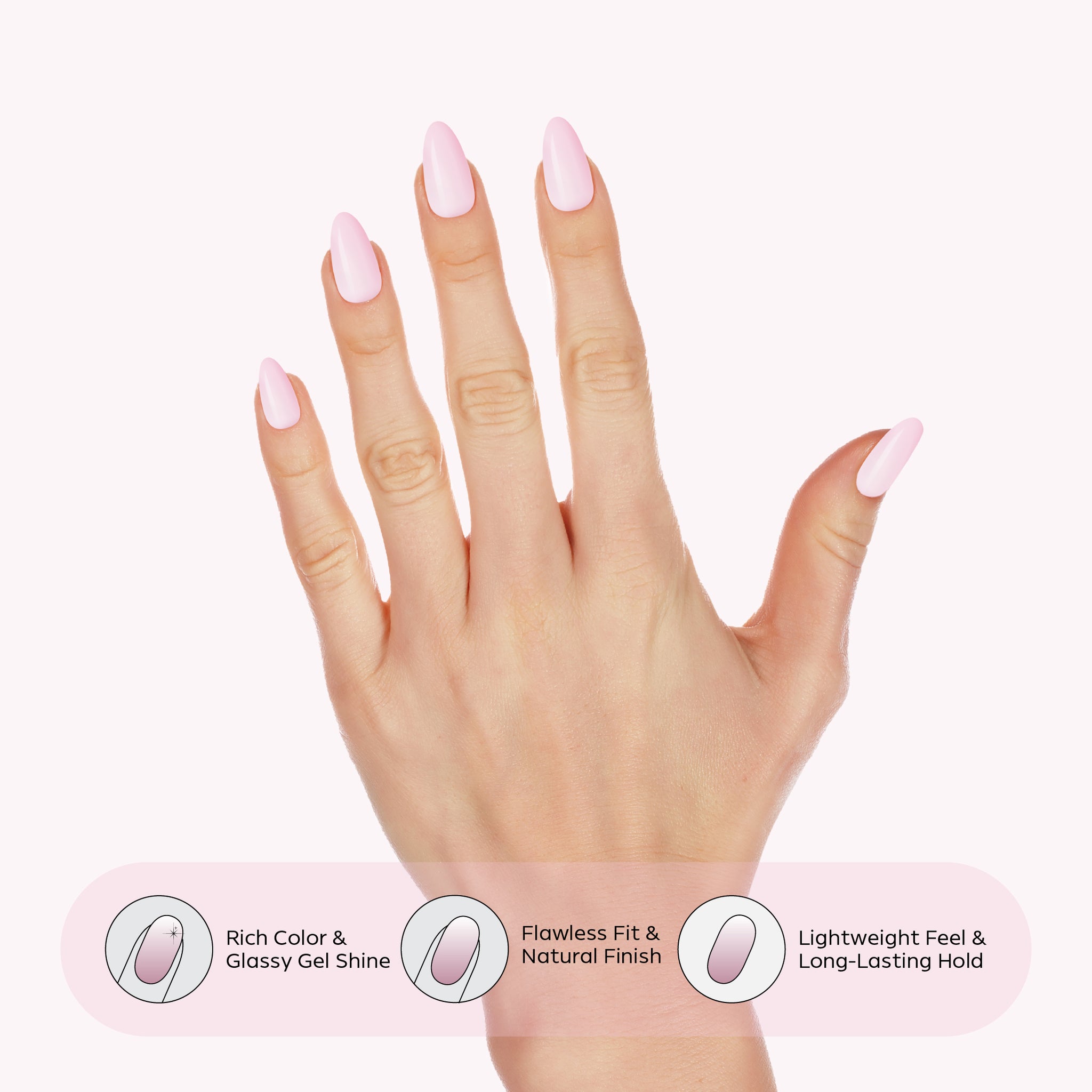 Nano® Barely Blush Pressed on Nails - 24pcs with Glue | Instant Gel-Like Shine, Soft Pink Glossy Fake Nails Set